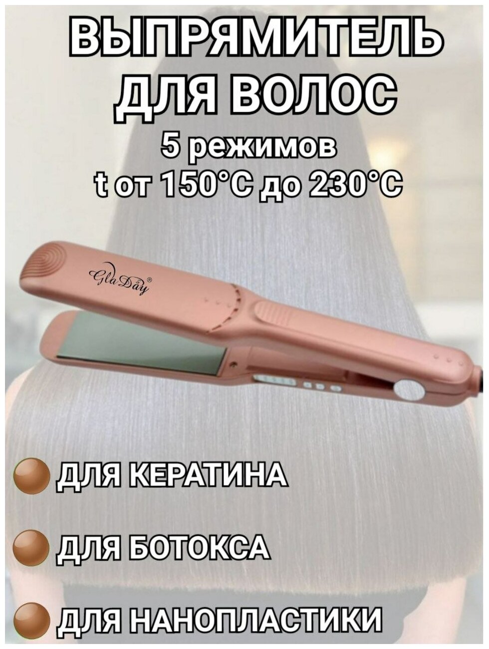Hair straightener for evaporation of keratin, Botox, nanoplasty, wide plates.