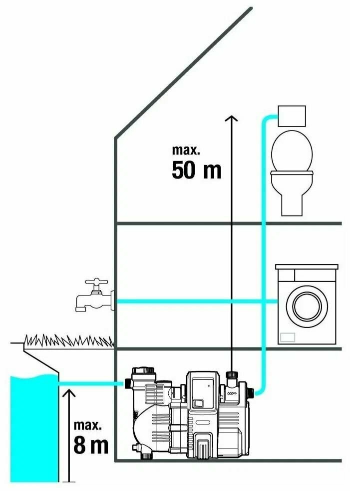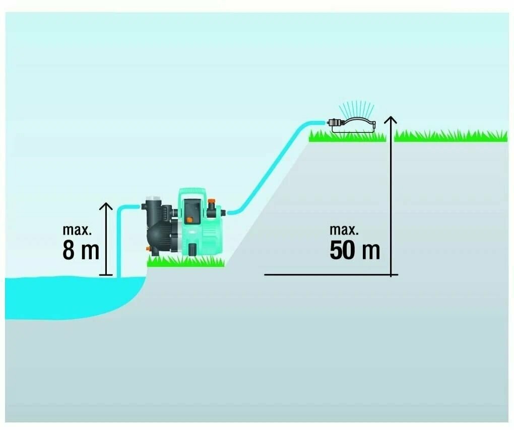 Surface pump type: standard, water quality: clean, maximum pressure: 50 m, throughput: 5 m³/hour, immersion / suction depth: 8 m, functions: Yes, type: surface