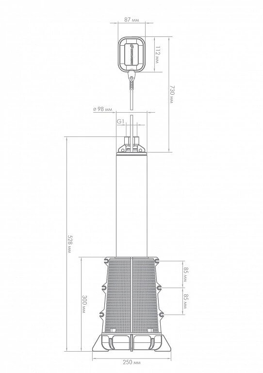 With bottom filter; maximum allowable sand content - 300 g / m3; maximum number of pump starts - 20 times per hour; pump diameter: 98 mm; maximum product diameter: 250 mm; protection level IP 58