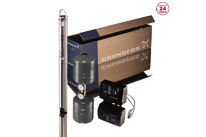 The kit includes: pump, control unit CU301, membrane tank 8 l/7 bar, pressure sensor 0-6 bar, pressure gauge 0-10 bar