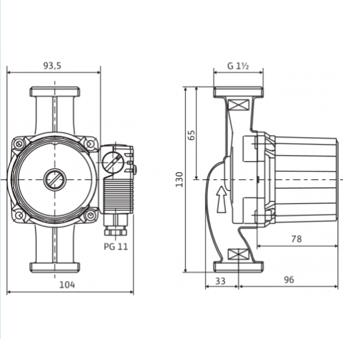 Impeller PP-GF40; shaft: stainless steel, bearing material: metal graphite; protection class IP 44; rotor type: wet; maximum ambient temperature: 40 °C; rated current: 0.43 A; speed max. 1900 1/min; P