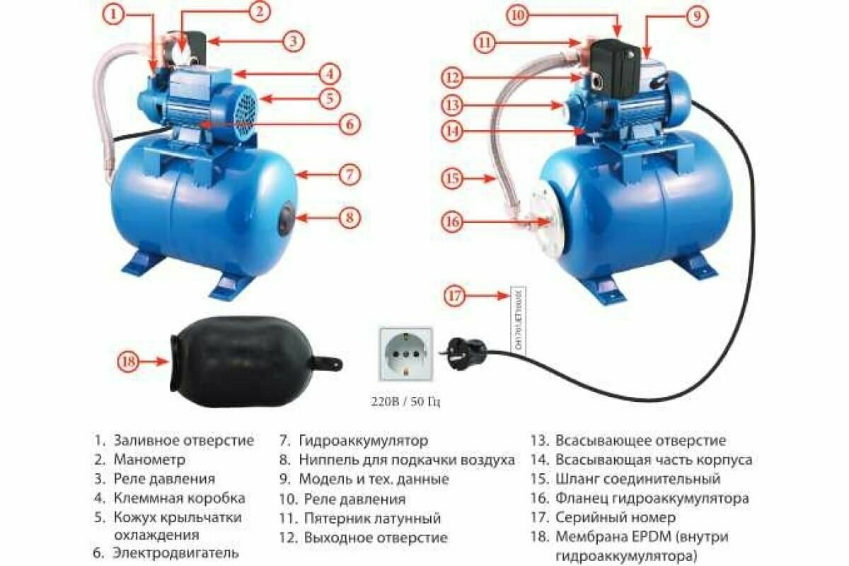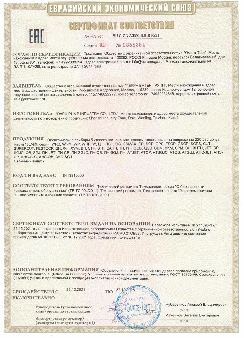 Impeller material - brass, body material - cast iron / aluminium; maximum productivity 33 l/min