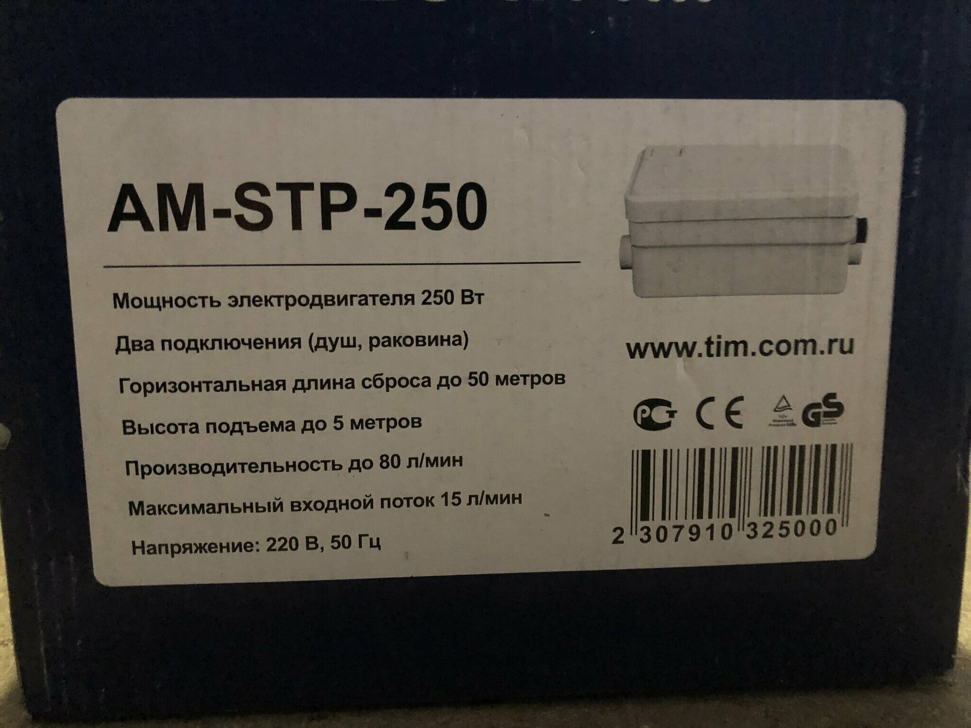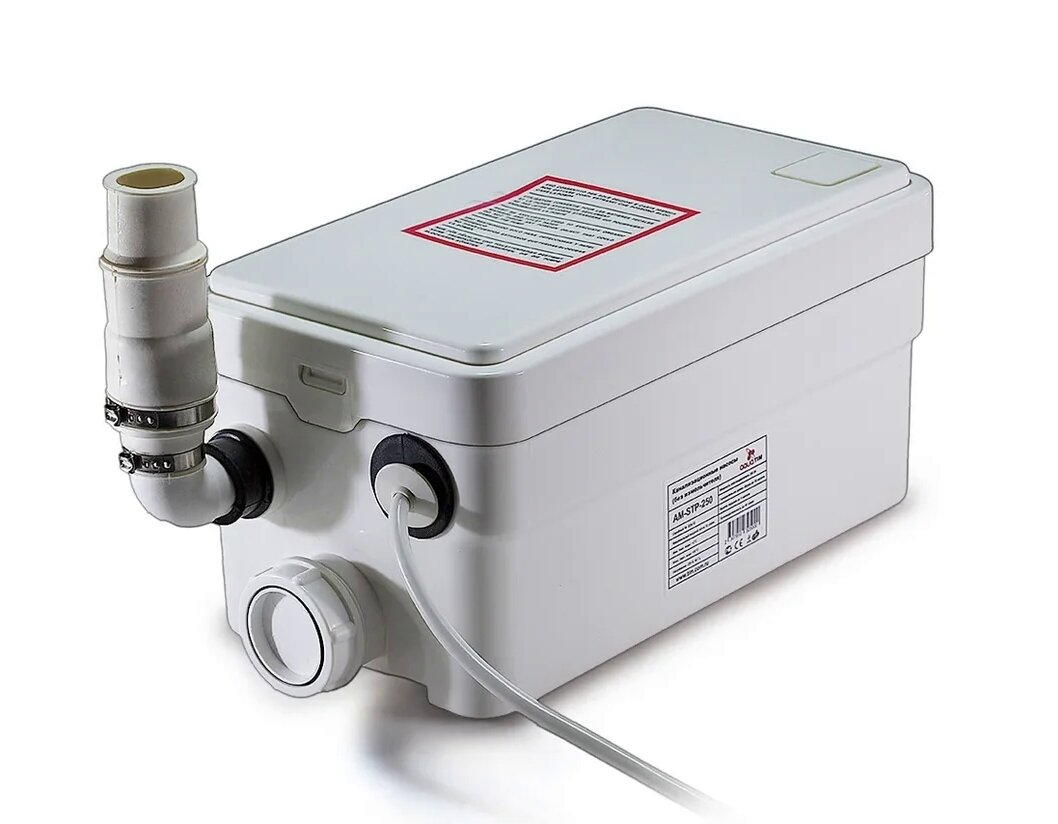 Sanitary pump STP-250, non-return valve, inlet plug, plastic nut, sealing ring, metal clamp, floor fixing, fastening screw, instructions, packaging