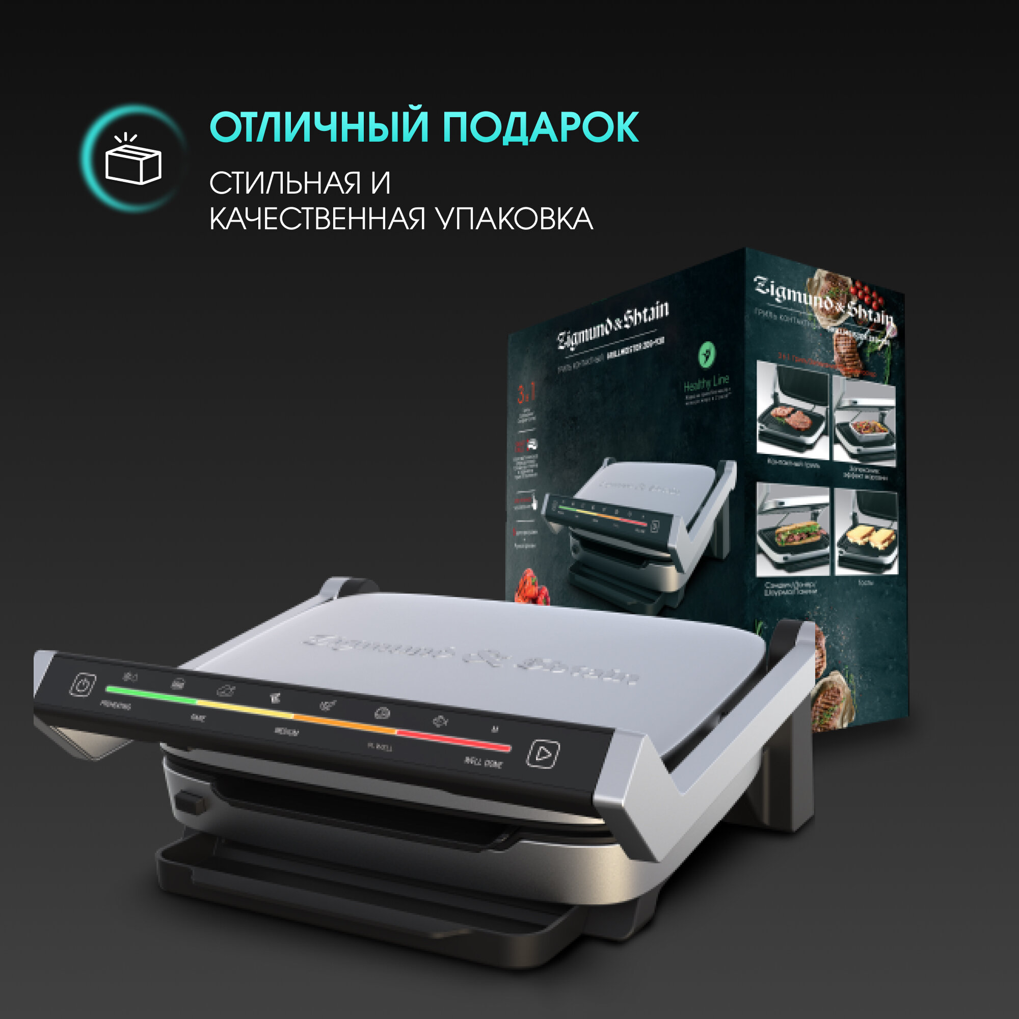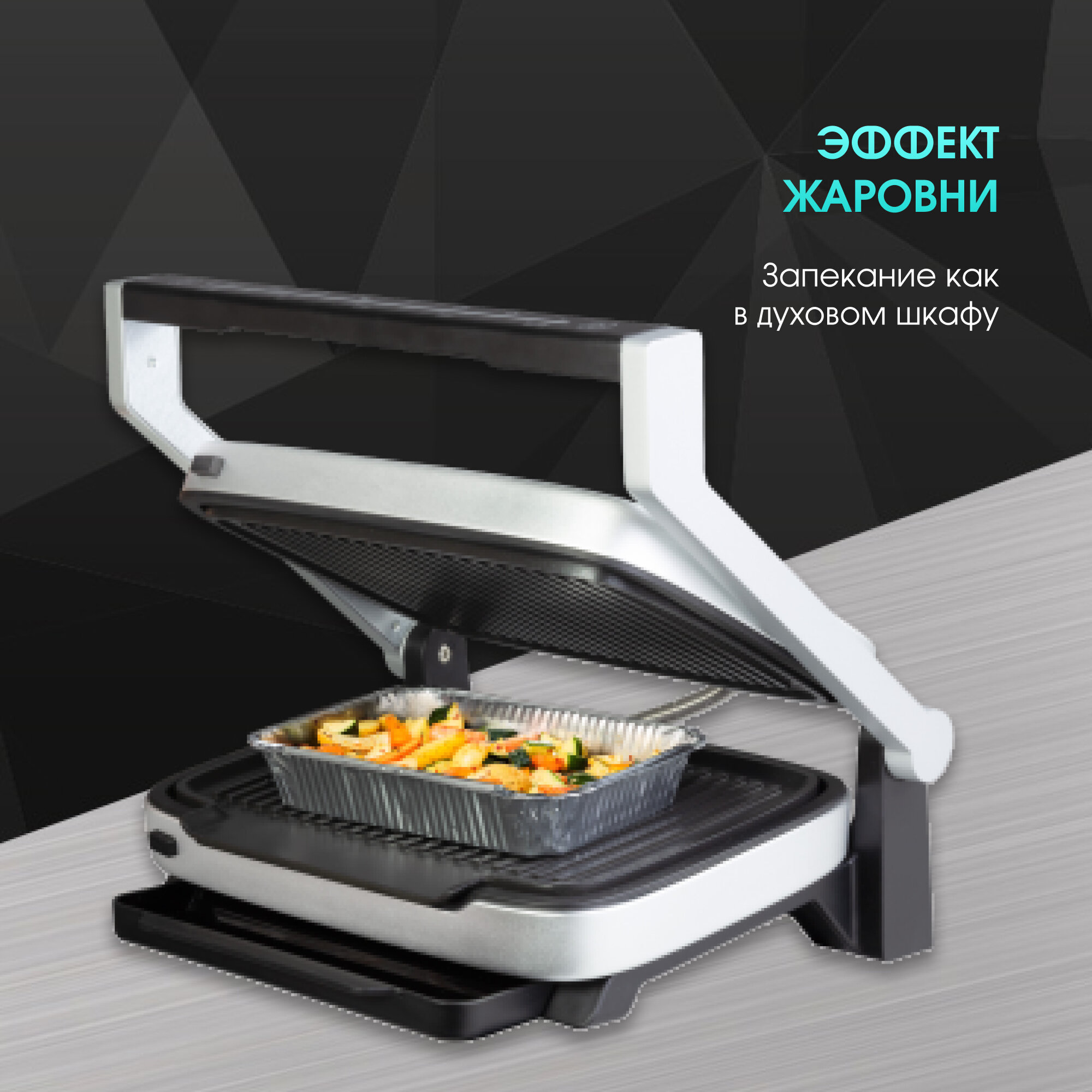 Type: grill, power: 2000 W, control: mechanical, features: non-stick coating, contact grill, fat collection tray, height adjustment of the top panel, removable plates, additional functions: possible