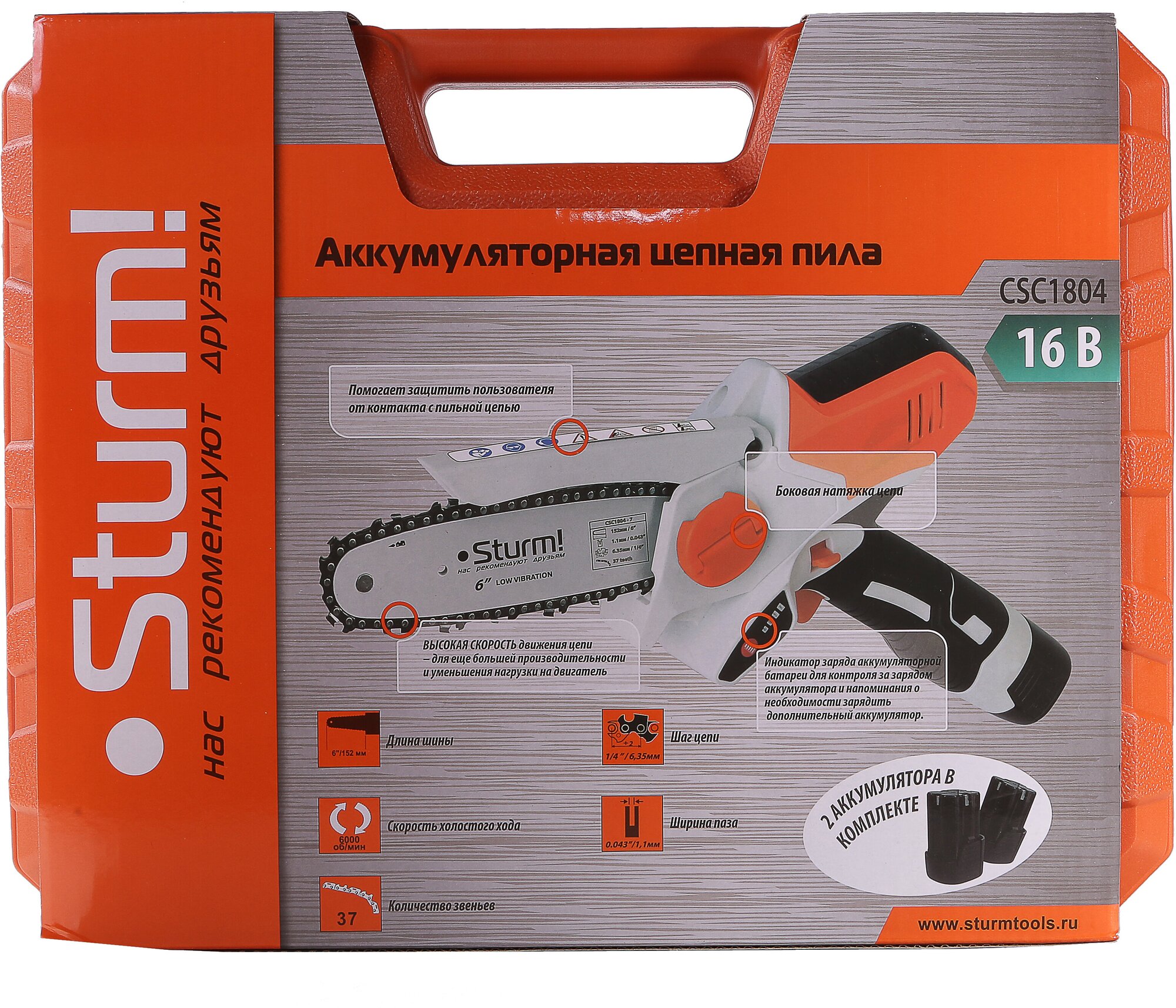 Power type: battery powered, bar length: 15.20 cm, power W: 64 W, weight: 1.36 kg, chain pitch: 1/4 inch, battery voltage: 16 V, design features: mini saw