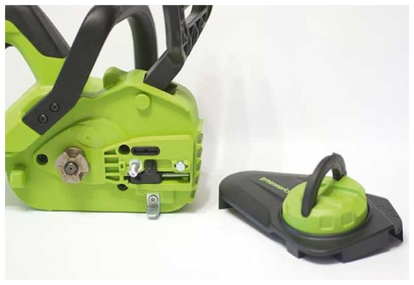 Cordless chain saw Greenworks Art. 2007007, 24V; Battery Greenworks 24V, 4Ah; Charger Greenworks 24V, 2A; Manual; Warranty card.