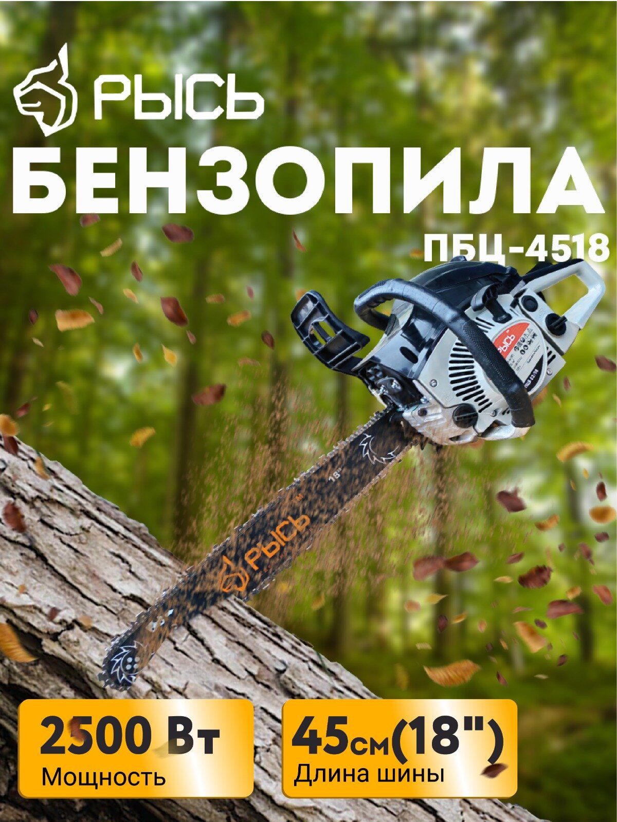 Power type: gasoline, tire length: 45 cm, power W: 1800 W, hp power: 2.50 hp, engine displacement: 45 cm³, weight: 6.50 kg, chain pitch: 0.325 inches, design features: anti-vibration system