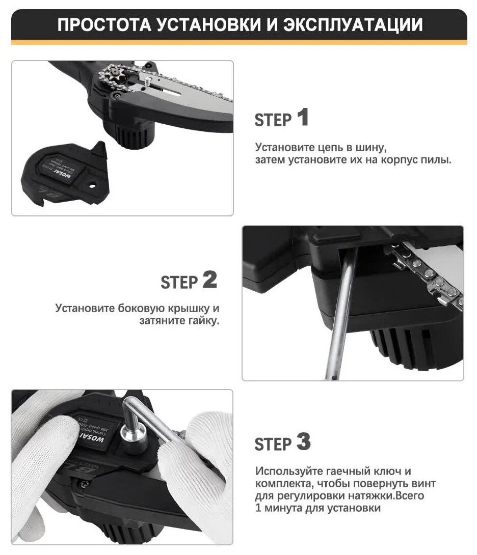 Electric saw, chain, battery, charger, screwdriver, wrench, oil container