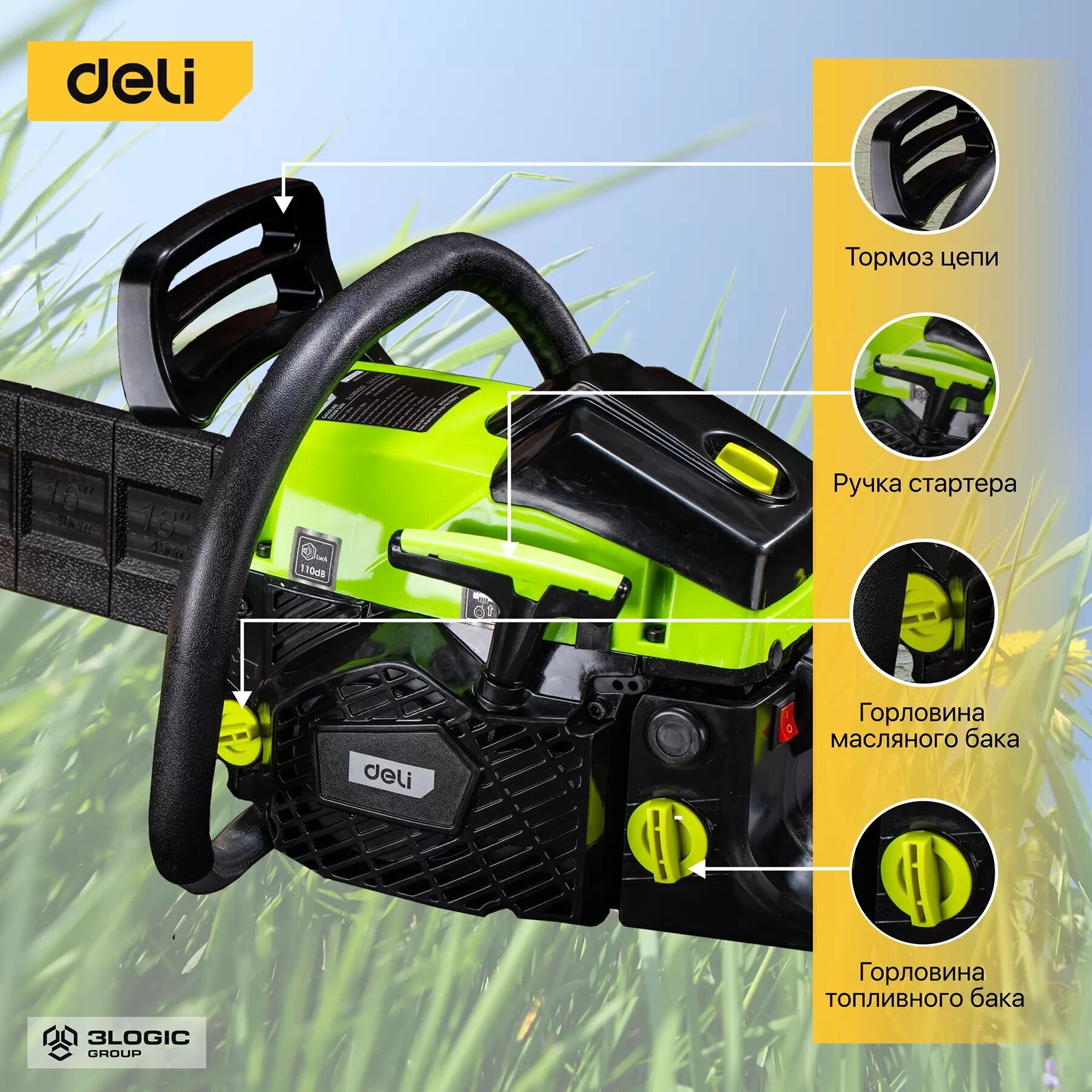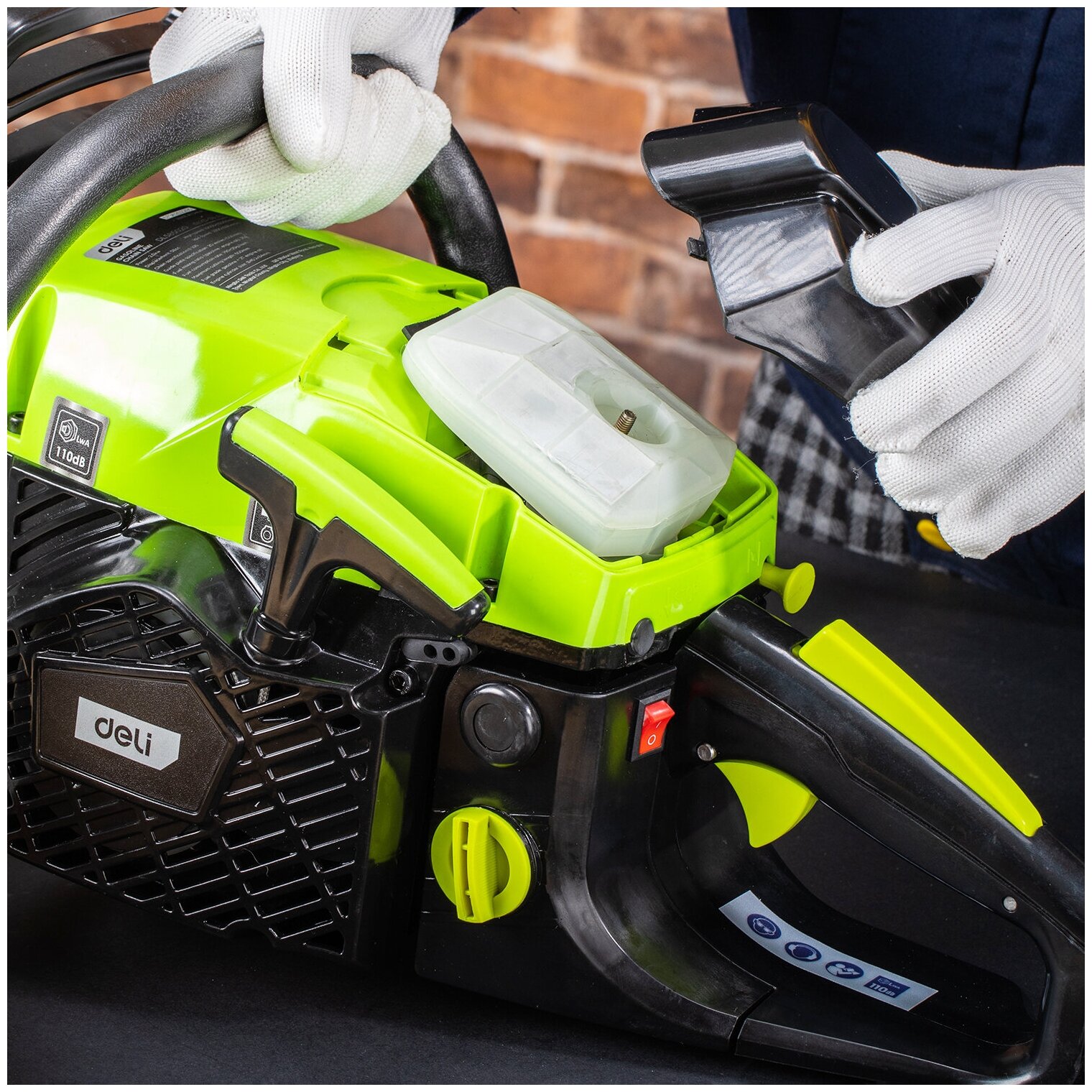 Chainsaw Deli DL585020 2 kW, volume 58 cm3, 10000 rpm, bar 50 cm, chain pitch 3.8