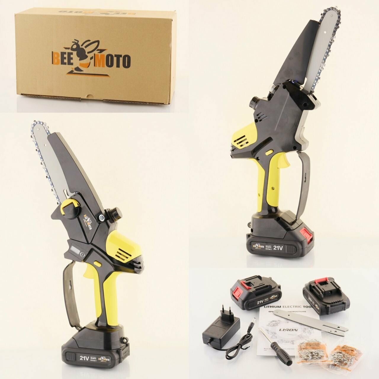Cordless chain saw 21V 6, 1.5Ah, 2 batteries, lubrication system, display, yellow BEEZMOTO
