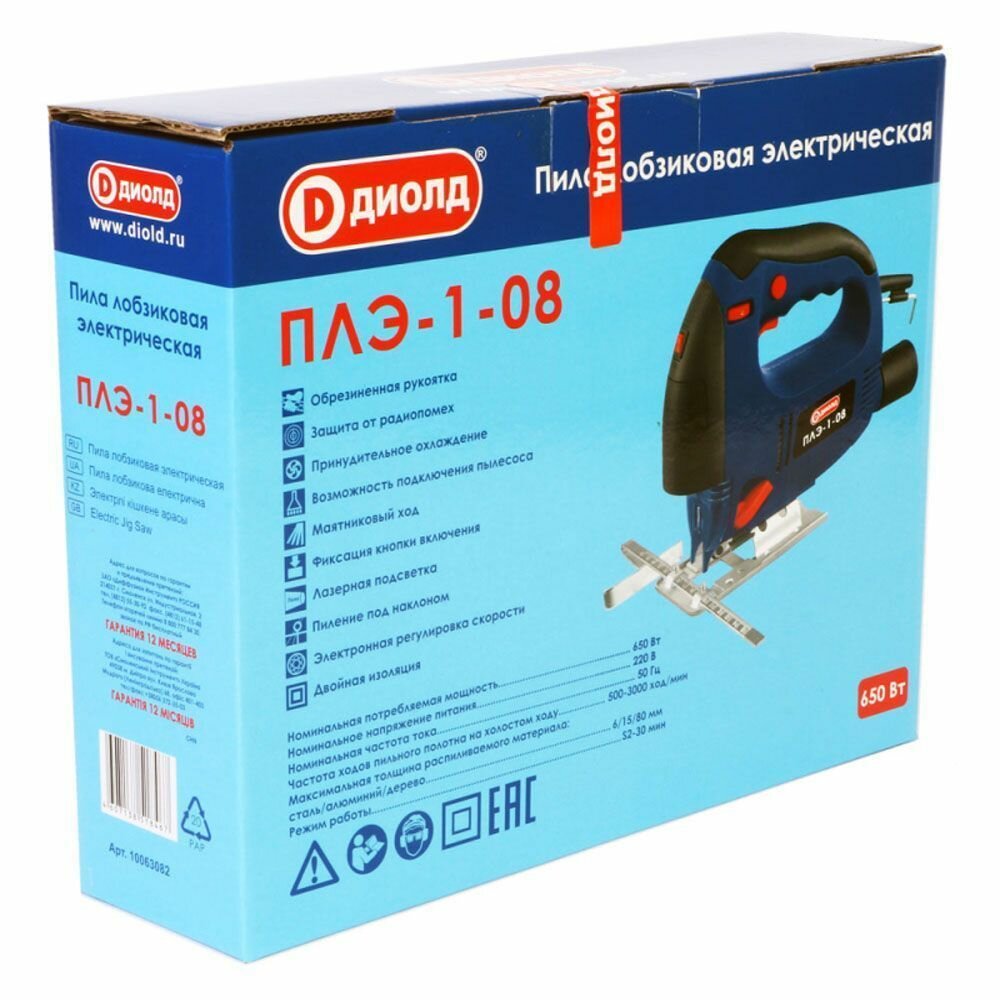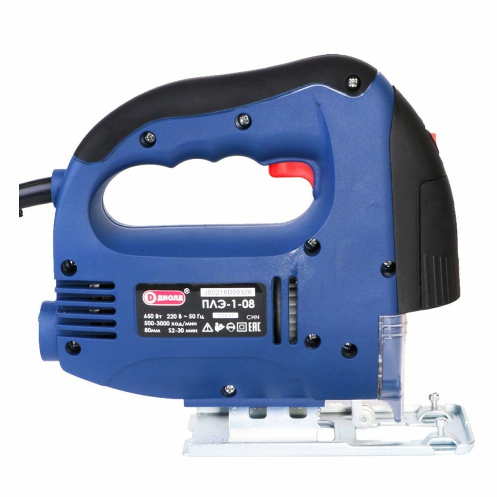 Type of power supply: from the mains, power: 550 W, functions: pendulum stroke, stroke frequency adjustment, design features: quick-clamping fastening of the file, the ability to connect a vacuum cleaner, protective shield, cutting depth in wood