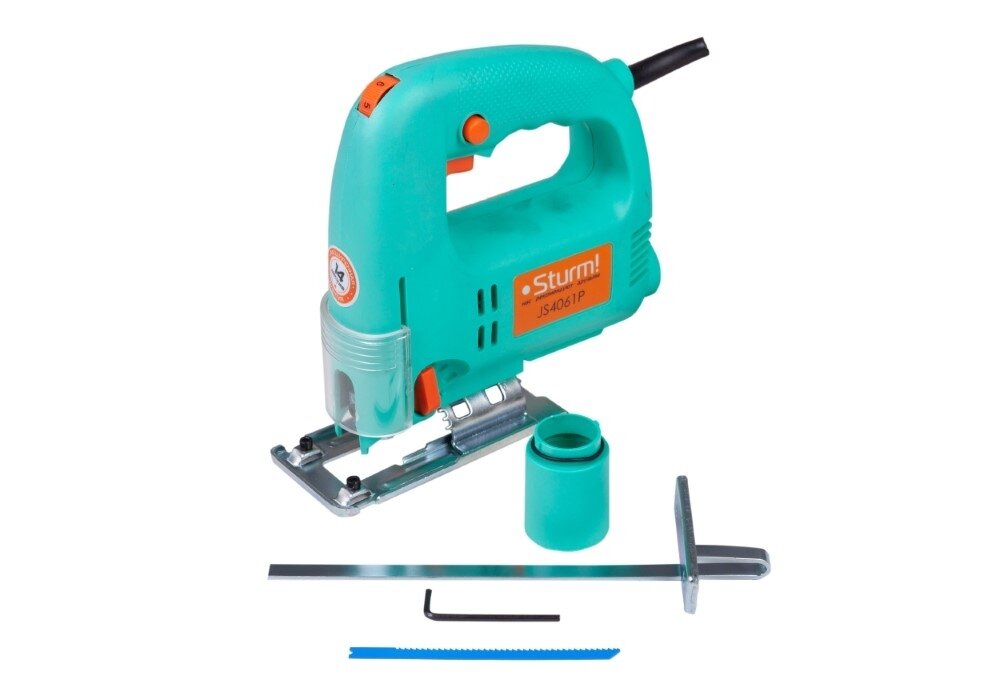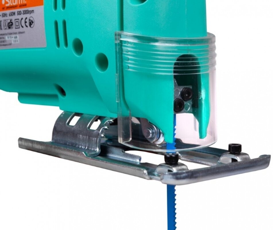 Power type: mains, power: 650 W, functions: pendulum stroke, soft start, speed stabilization system, design features: possibility of connecting a vacuum cleaner, protective shield, connection of a vacuum cleaner, prop depth