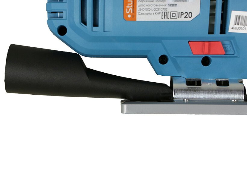Quick-release fastening of the file, the ability to connect a vacuum cleaner, protective shield, backlight, Connection for a vacuum cleaner, Rubber-coated handles, Sawdust removal system