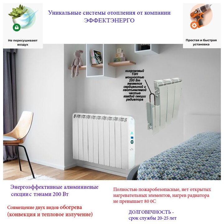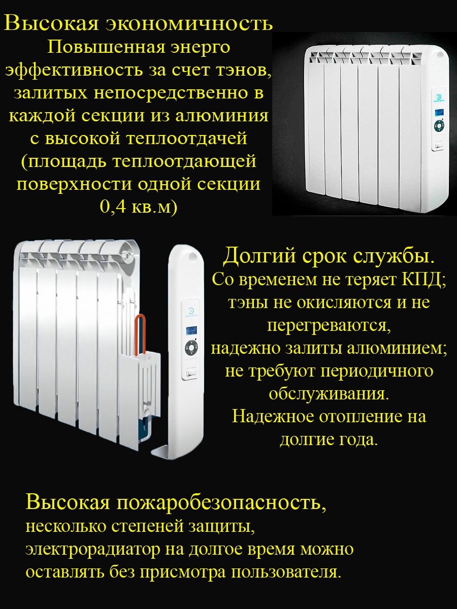 Each section of the electric radiator is a heating element filled with aluminum, without a liquid system