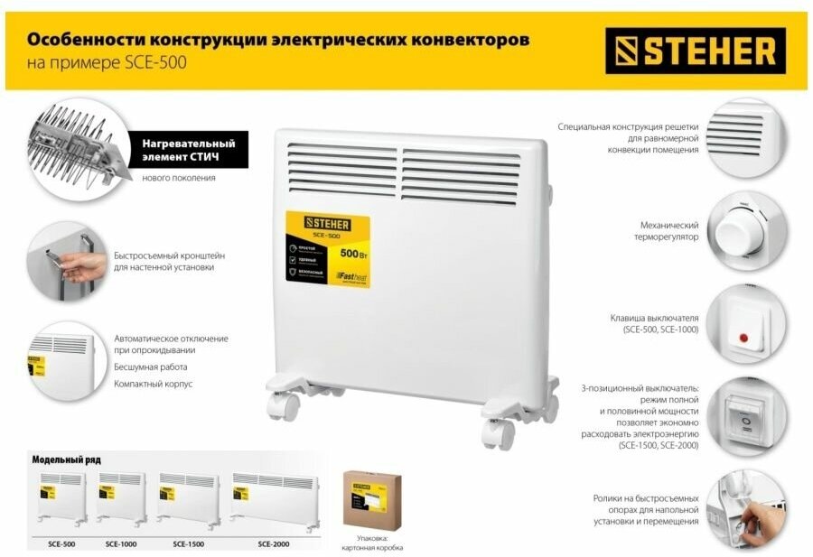 Heater type: convector, installation: wall/floor, heating element type: needle, control: mechanical