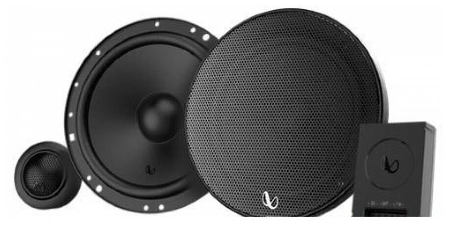 2 speakers, 2 grills, 8 bolts, 8 brackets, 2 crossovers, 2 tweeters, 2 Infinity logos