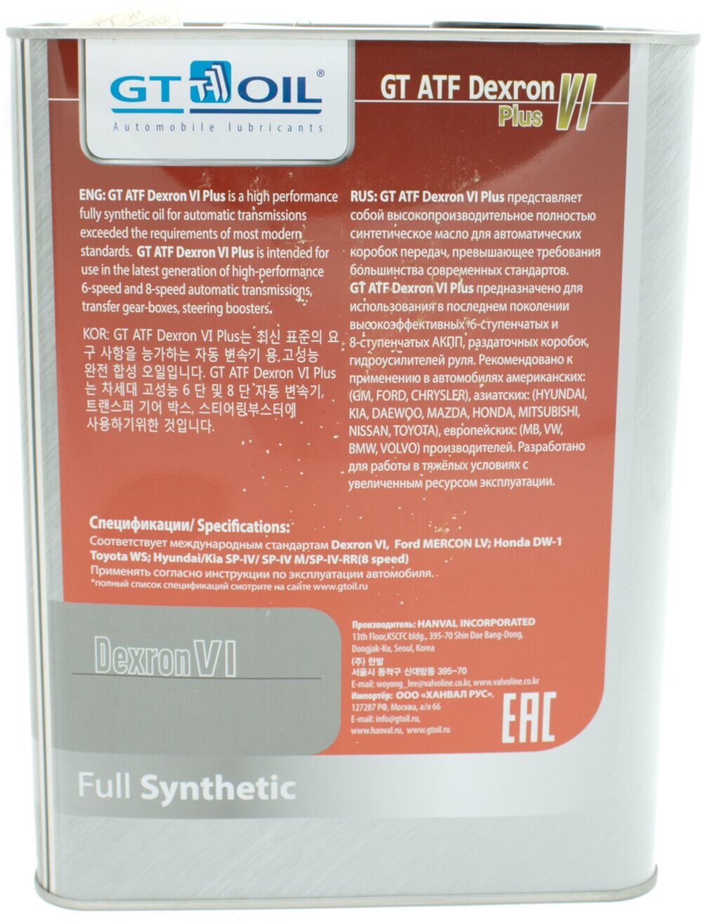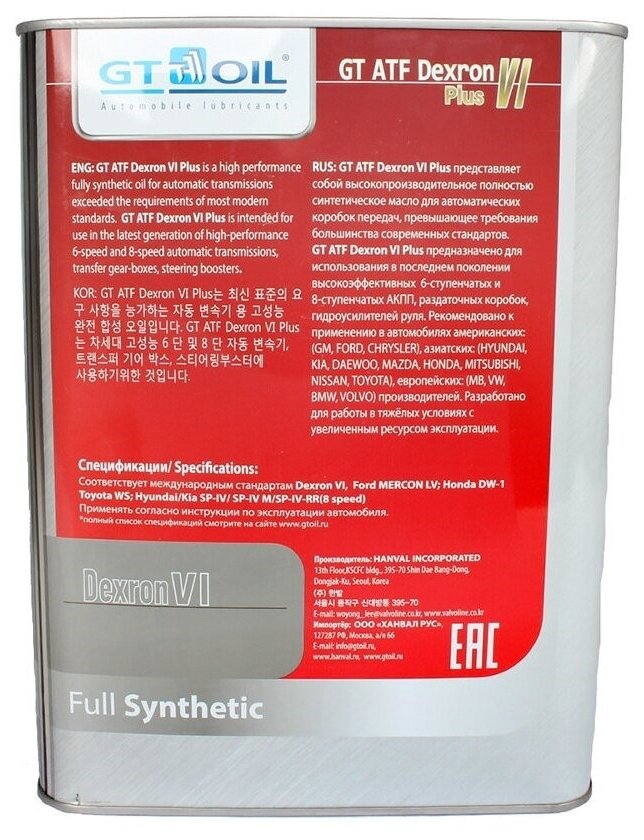 Trance. Gt Atf Dexron Vi Plus 1 L GT OIL art. 8809059408513