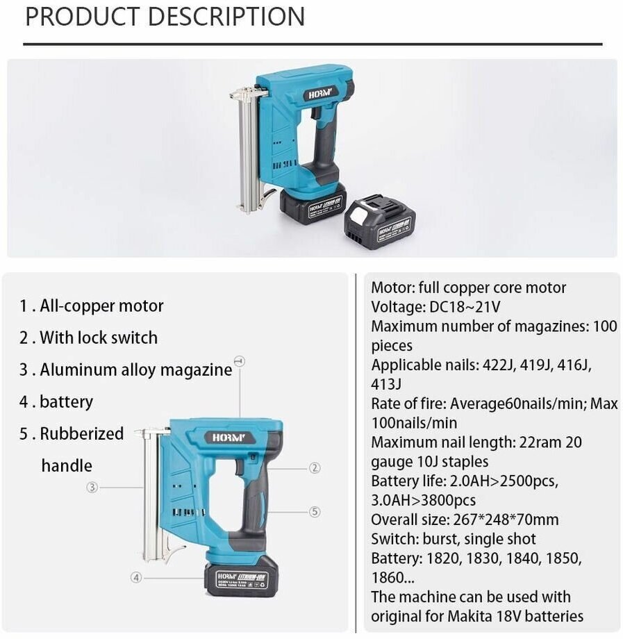 Cordless stapler stapler 2 batteries and charger