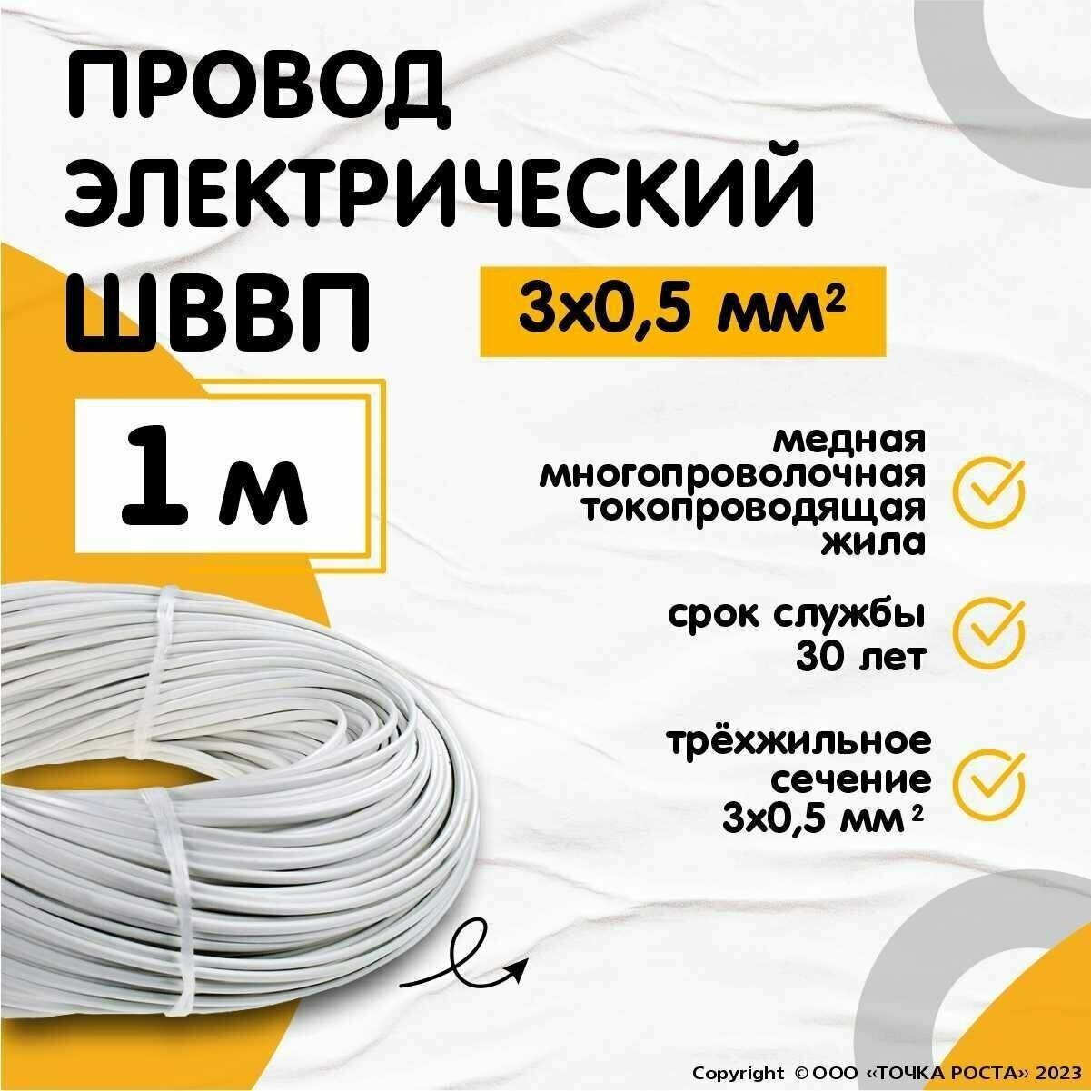 Electric cable ShVVP 3*0.5 mm, three-core, cross-section 0.5 mm, white, 1 m