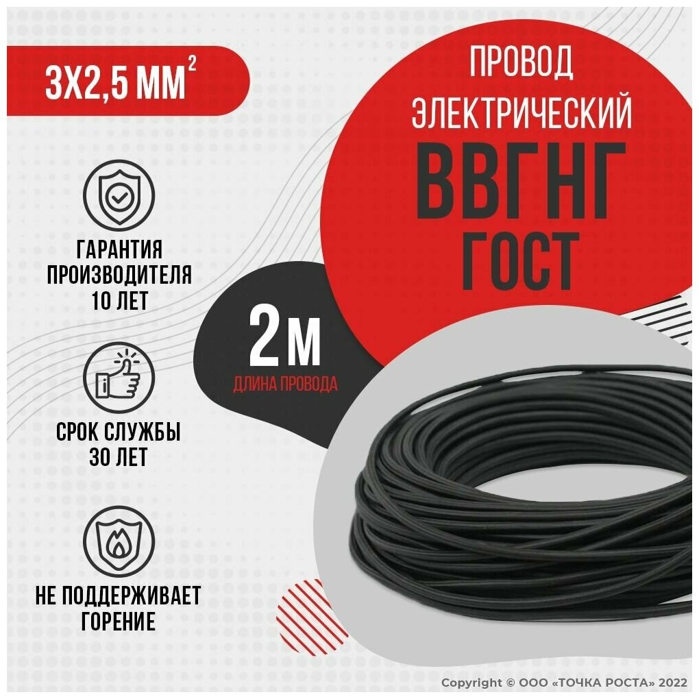 Electrical wire VVG/VVG ng/VVGng GOST 3x2.5, 2m