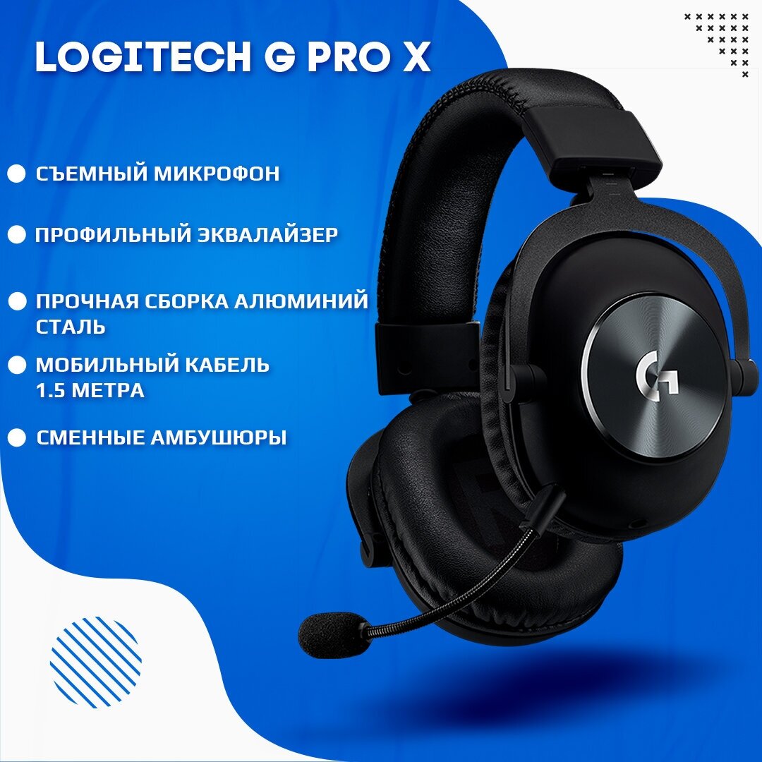 Dimensions: 138 x 94 x 195 mm; Includes: PRO X gaming headset, synthetic leather ear pads, memory foam padding, fabric ear pads, memory foam padding, external USB sound card, detachable microphone, cable