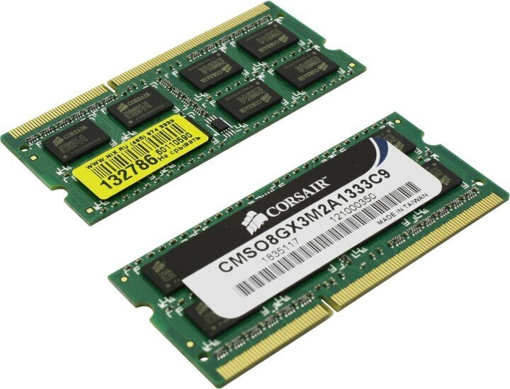 Corsair 8GB 4GB x 2 pcs. DDR3 1333 MHz SODIMM CL9 CMSO8GX3M2A1333C9