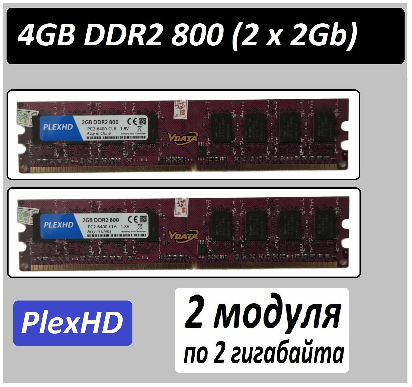 Plexhd 4gb 2x2Gb ddr2 800 pc2-6400-cl6 VData - 2 modules of 2 GB each