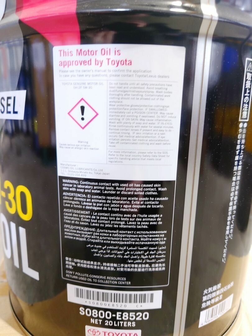 SAE viscosity grade: 5W-30, oil type: synthetic, fuel type: diesel, engine type: four-stroke
