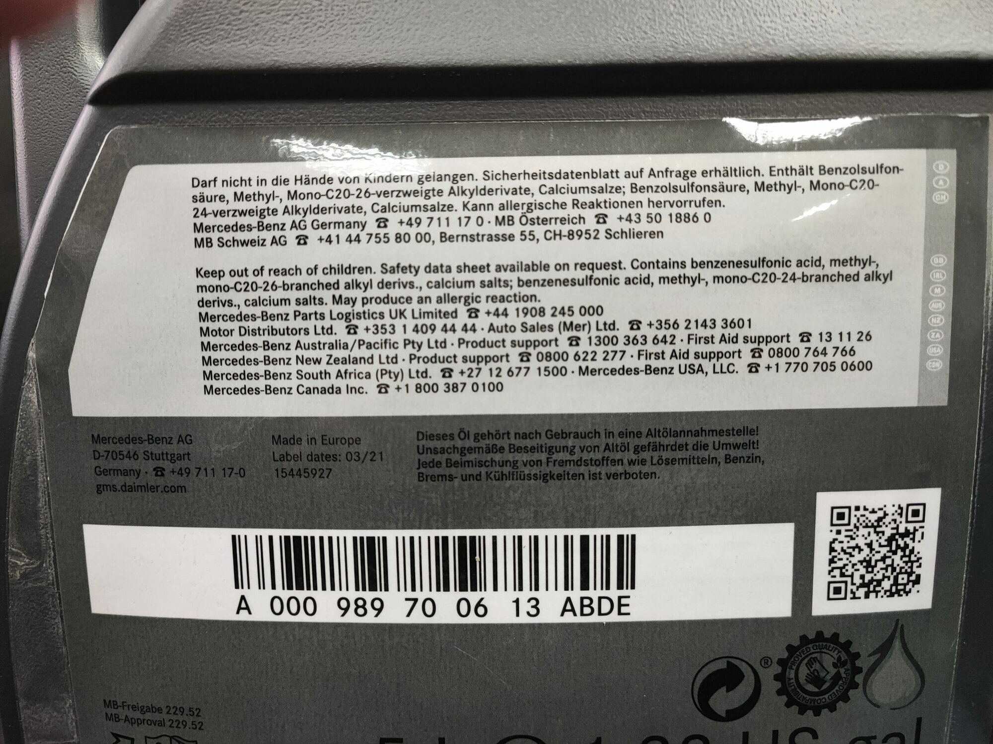 Mercedes-Benz 5W-30 229.52 Synthetic 5 l