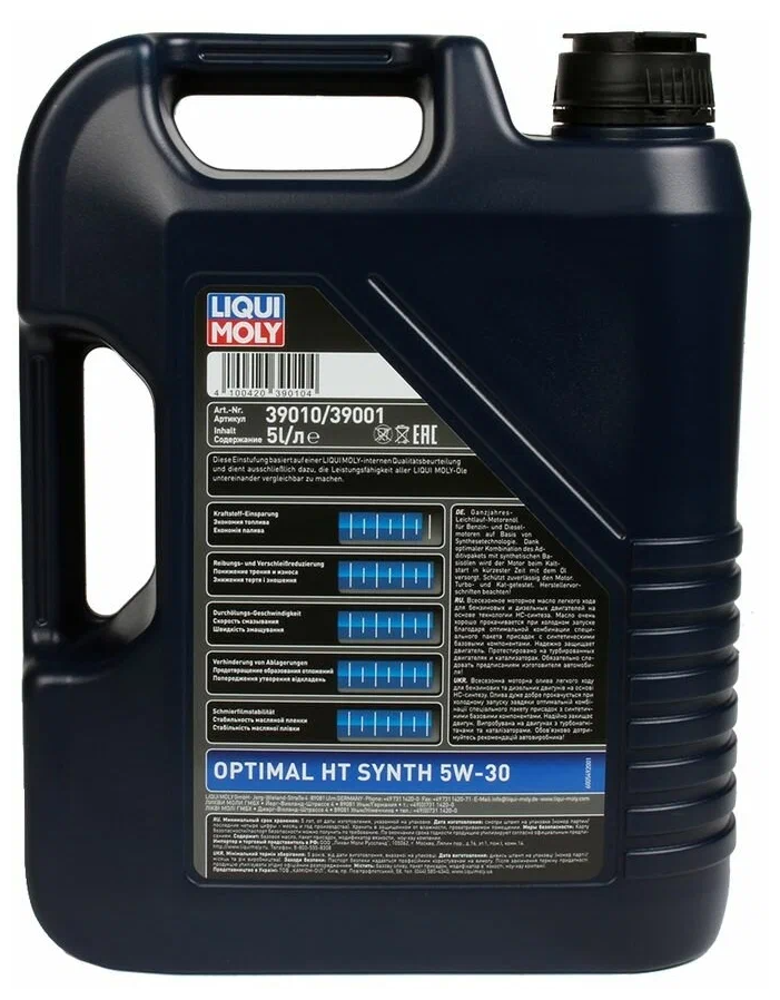 SAE viscosity grade: 5W-30, oil type: HC-synthetic, semi-synthetic, synthetic, HC-synthetic, vehicle type: passenger cars, fuel type: gasoline, diesel, Gas, API standard: CF, SN, CF/SN, SN /CF, ACEA Standard: A3/B4, A3, A3/B4