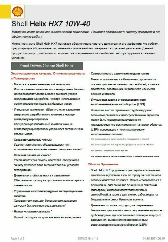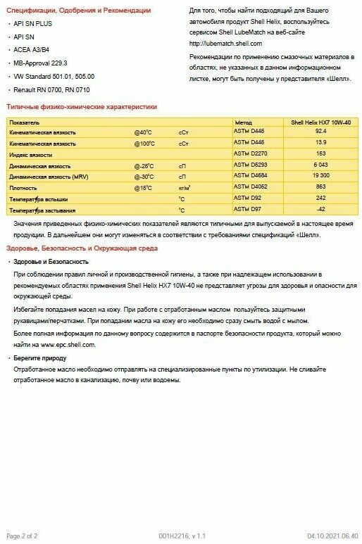 Viscosity index: 154; pour point -45°C; Flash point: 246°C; SHELL sold its entire business to Lukoil in May 2022.