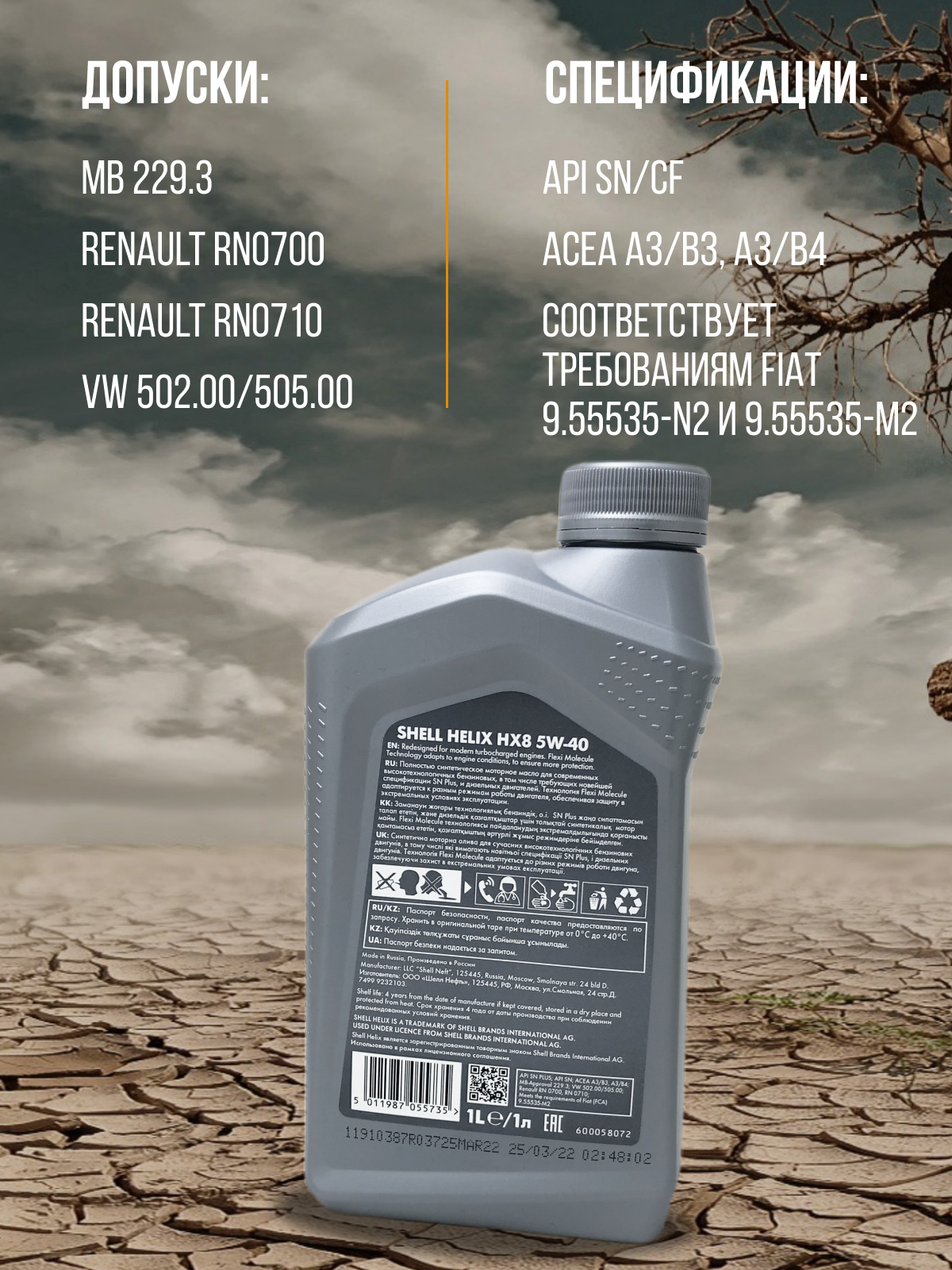 SAE viscosity grade: 5W-40, oil type: synthetic, fuel type: gasoline, diesel, Gas, API standard: SN, SN+, ACEA standard: A3, B3, B4, OEM approvals: FIAT 9.55535-M2, VW 502.00, VW 505.00, MB-Approval 229.3, Renault RN0700, Renault RN0710, engine type: four