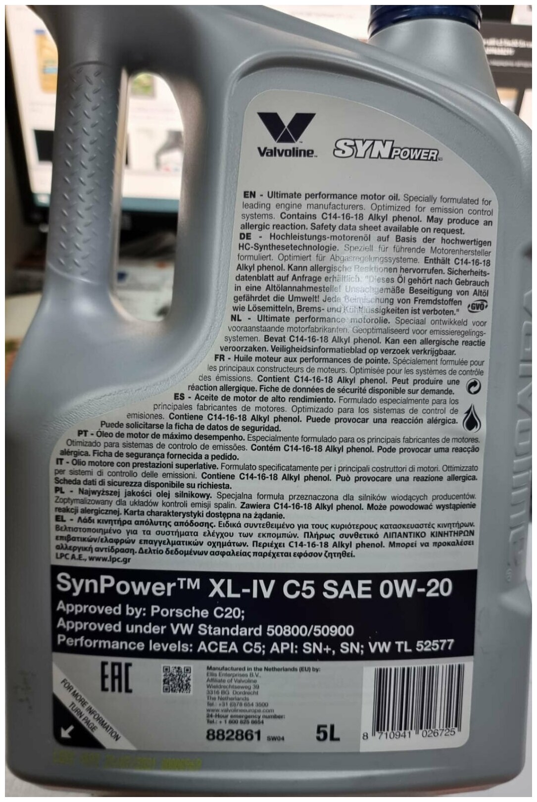 SAE viscosity grade: 0W-20, oil type: synthetic, vehicle type: passenger cars, fuel type: gasoline, diesel, Gas, Hybrid, API standard: SN, SN+, SP, RC, ACEA standard: C5, C5, OEM approvals : Porsche C20, Porsche C20, VW 508 00, VW 509 00, Porsche C20; VW
