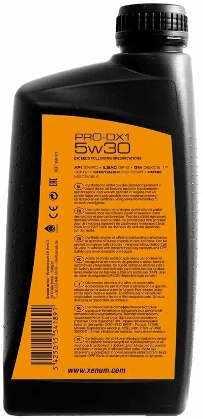 SAE viscosity grade: 5W-30, oil type: synthetic, fuel type: gasoline, diesel, Gas, Hybrid, API standard: SN, SN+, OEM approvals: Chrysler MS-6395, FORD M2C 946-A, GM Dexos 1 Gen2, engine type: four stroke