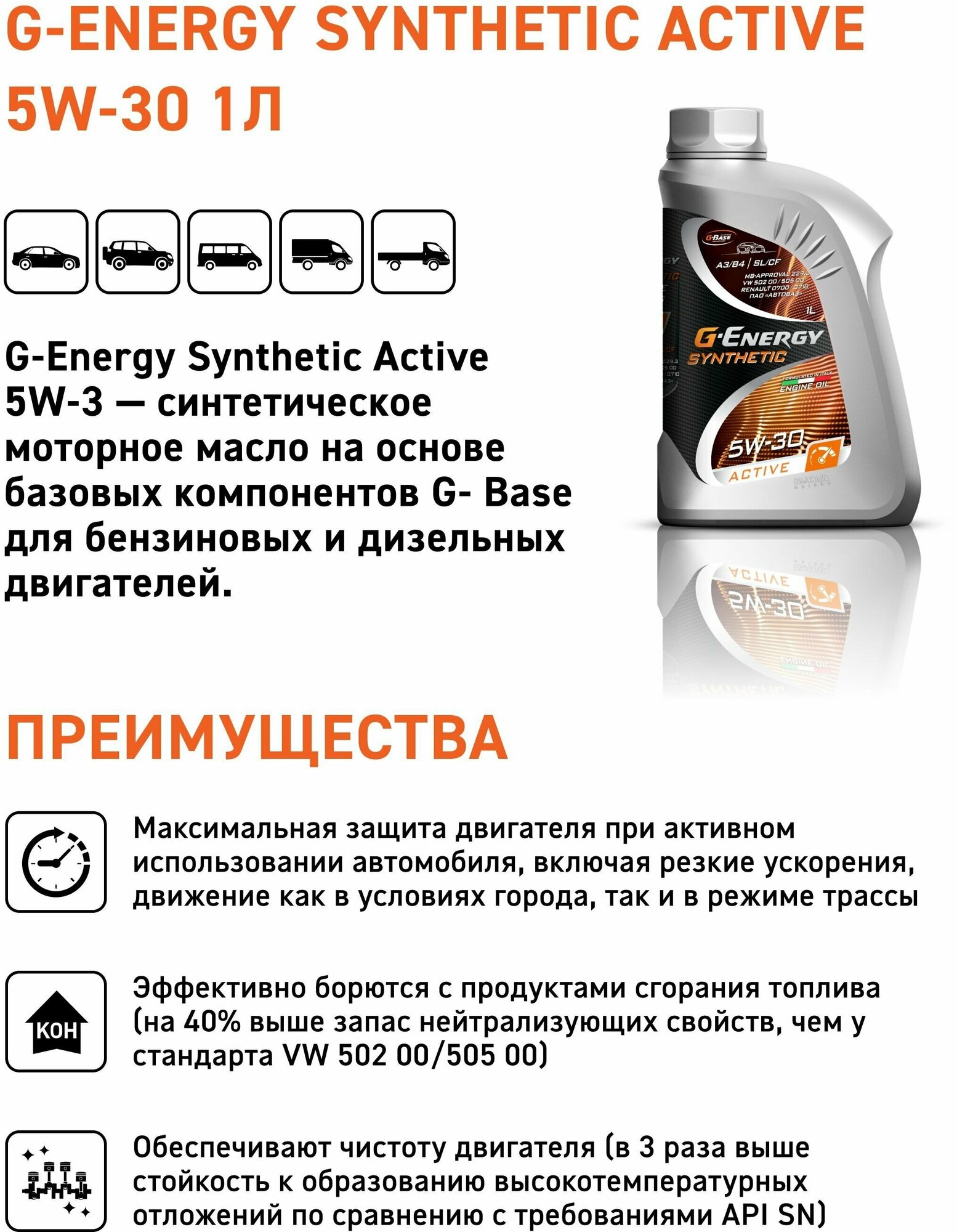 SAE viscosity grade: 5W-30, oil type: synthetic, fuel type: gasoline, diesel, API standard: CF, SL, ACEA standard: A3, B3, B4, OEM approvals: Avtovaz PJSC, MB-Approval 229.3, Renault RN700, Renault RN710, VW 502 00 / 505 00