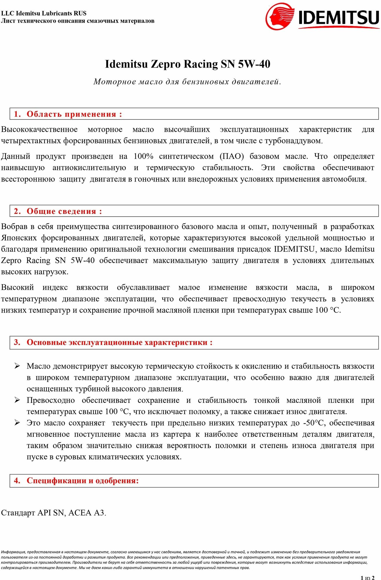 Engine IDEMITSU ZEPRO RACING SN 5W40 l synth