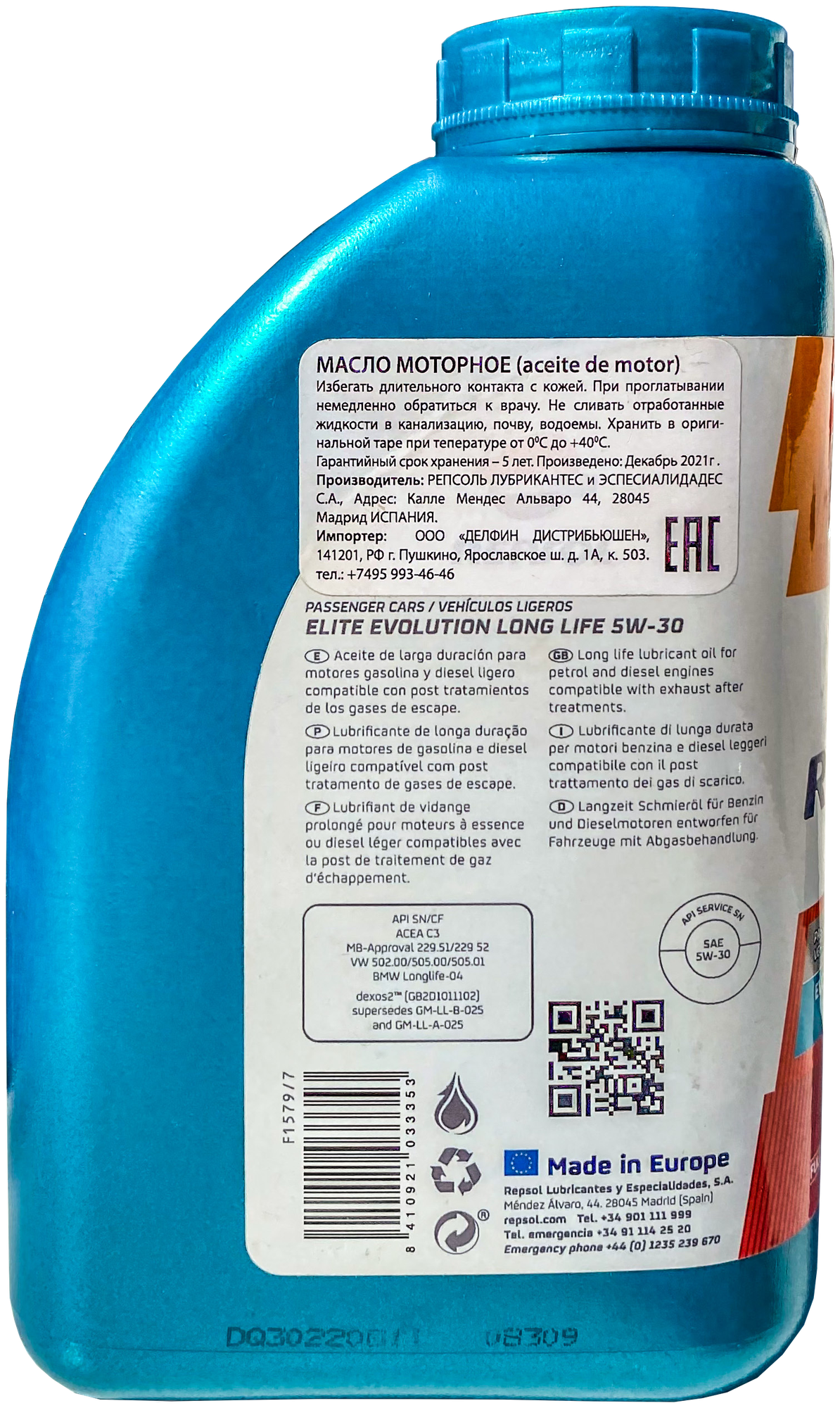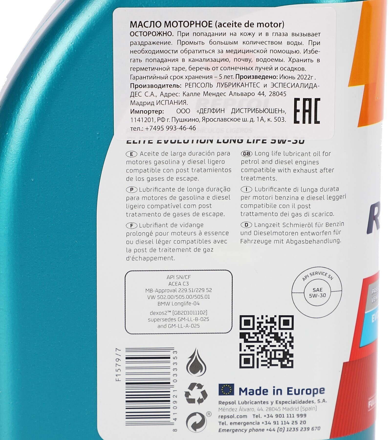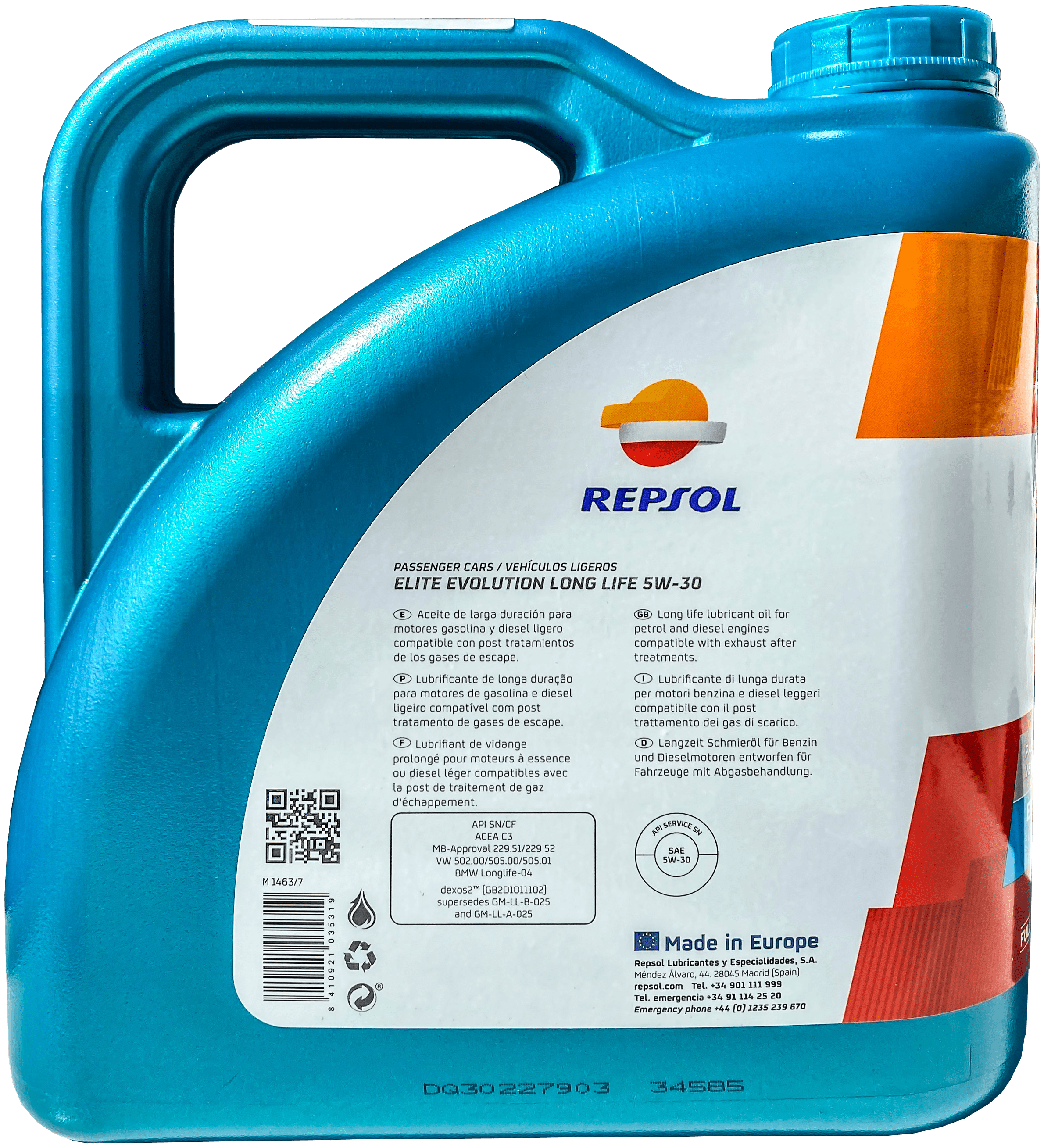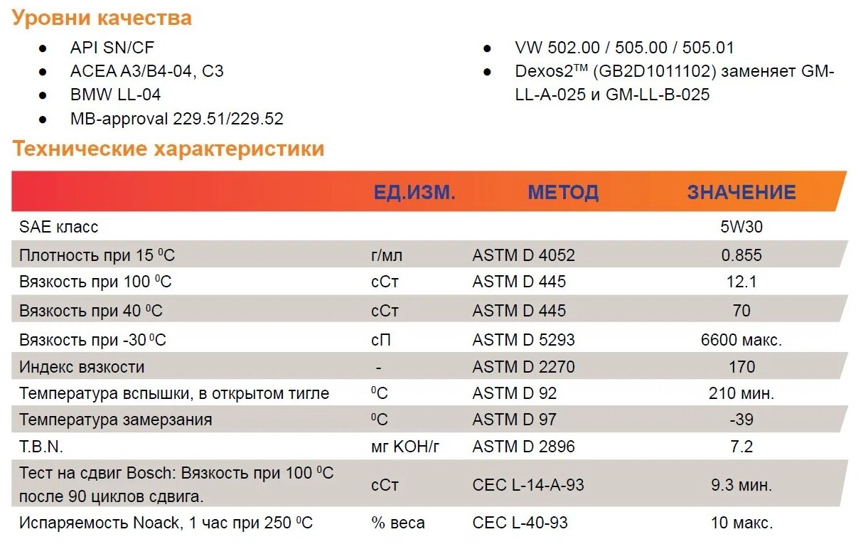 BMW Longlife-01, BMW Longlife-04, GM Dexos 1, GM Dexos 2, GM-LL-A-025, GM-LL-B-025, MB 229.5, MB 229.51, MB 229.52, Opel GM Dexos 2, VW 502.00 , VW 502.00/505.00, VW 505.00, VW 505.01, 8410921540660, BMW Long Life 04, Dexos2TM GB2D1011102 replaces GMLL-A-
