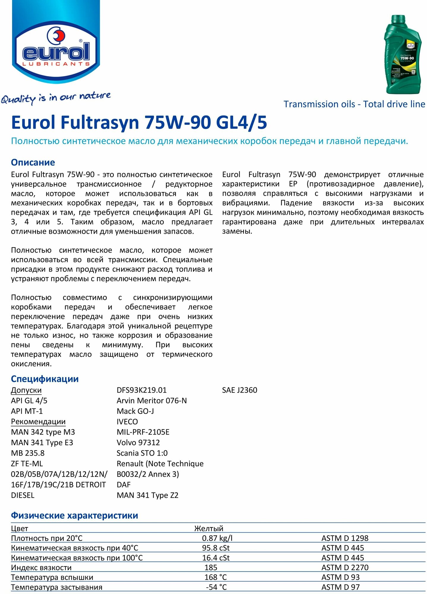 BMW Longlife-04, GM Dexos 2, GM-LL-A-025, GM-LL-B-025, MB 229.51, MB 229.52, FORD WSS-M2C917-A, VW 502 00, VW 505 00