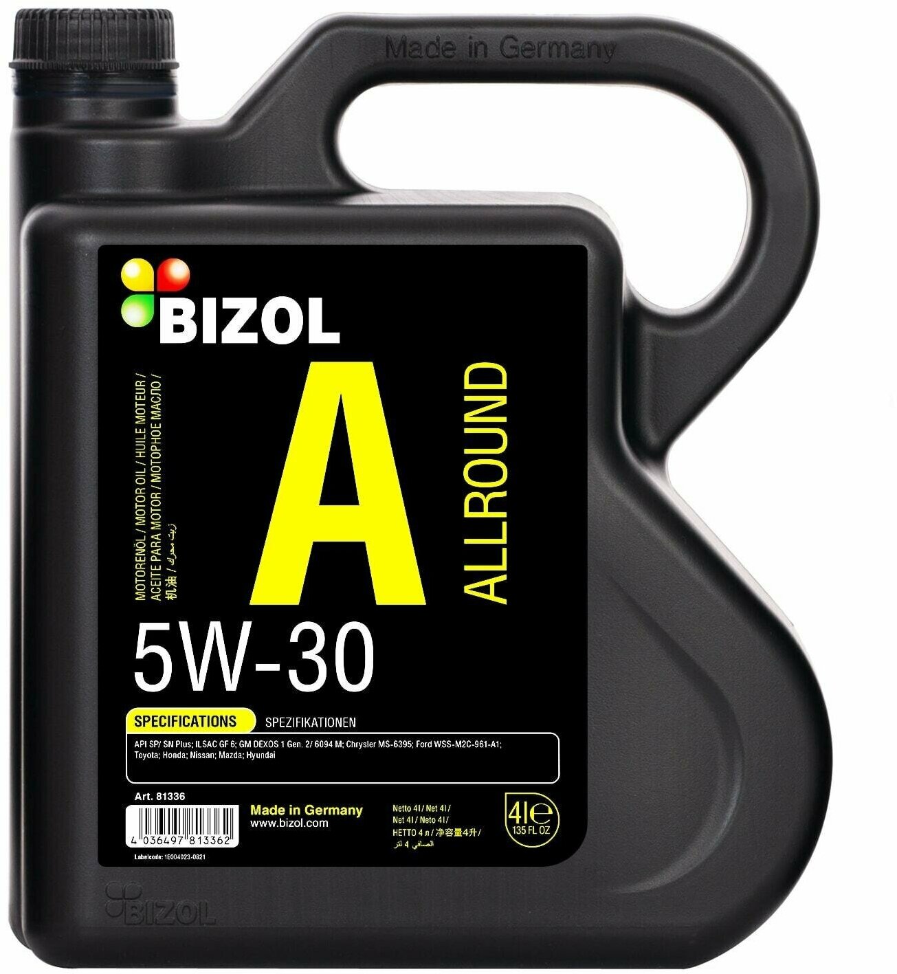 SAE viscosity grade: 5W-30, oil type: synthetic, HC-synthetic, fuel type: gasoline, API standard: SN+, SP, OEM approvals: Honda, Mazda, Suzuki, Chrysler, Daihatsu, Ford, GM, Hyundai, Isuzu, Kia, Mitsubishi, Nissan, Subaru, Toyota