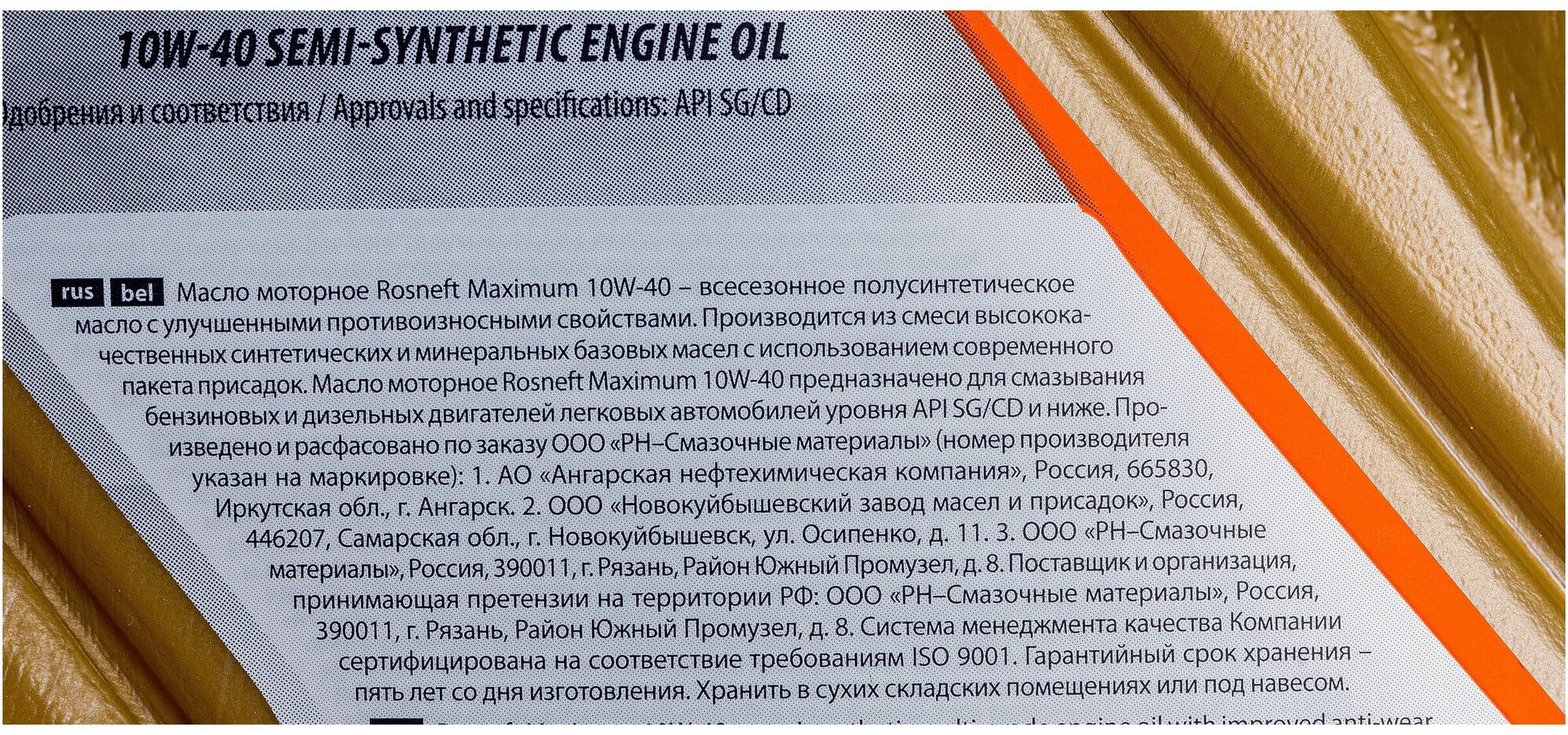 Motor ROSNEFT MAXIMUM 10W-40 semi-synthetic 1L