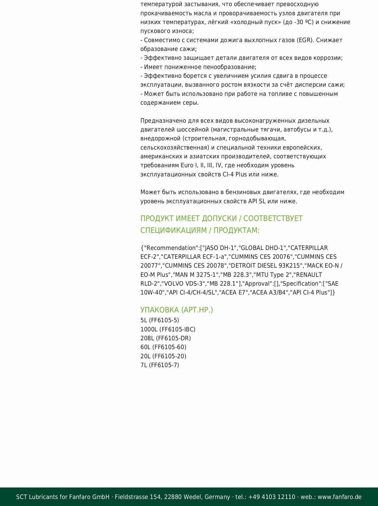 SAE viscosity grade: 10W-40, oil type: semi-synthetic, fuel type: diesel, API standard: SL, ACEA standard: E7, A3, B4, OEM approvals: Cummins CES 20076, Cummins CES 20077, Cummins CES 20078, DDC 93K215, Global DHD-1, MB 228.1, MB 228.3, MTU Typ 2, Mack EO