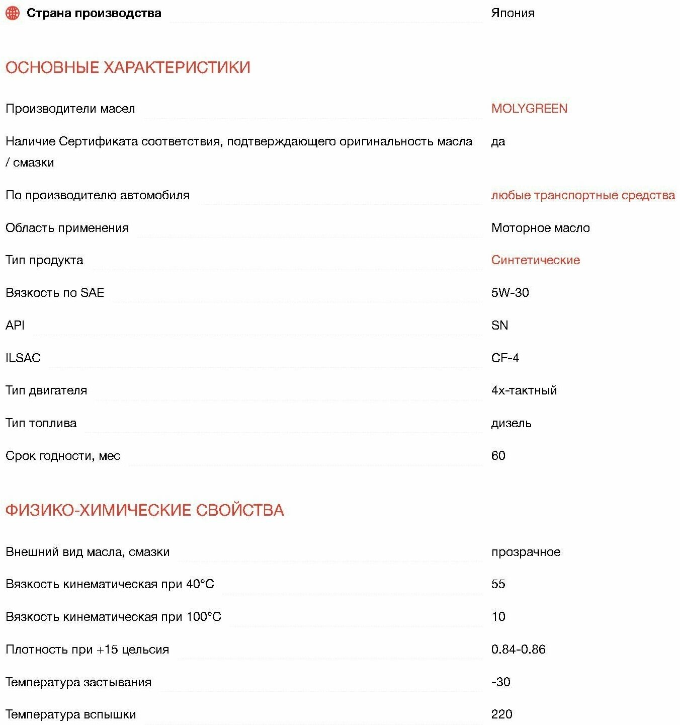 SAE viscosity grade: 5W-30, oil type: synthetic, fuel type: diesel, API standard: CF-4, engine type: four-stroke