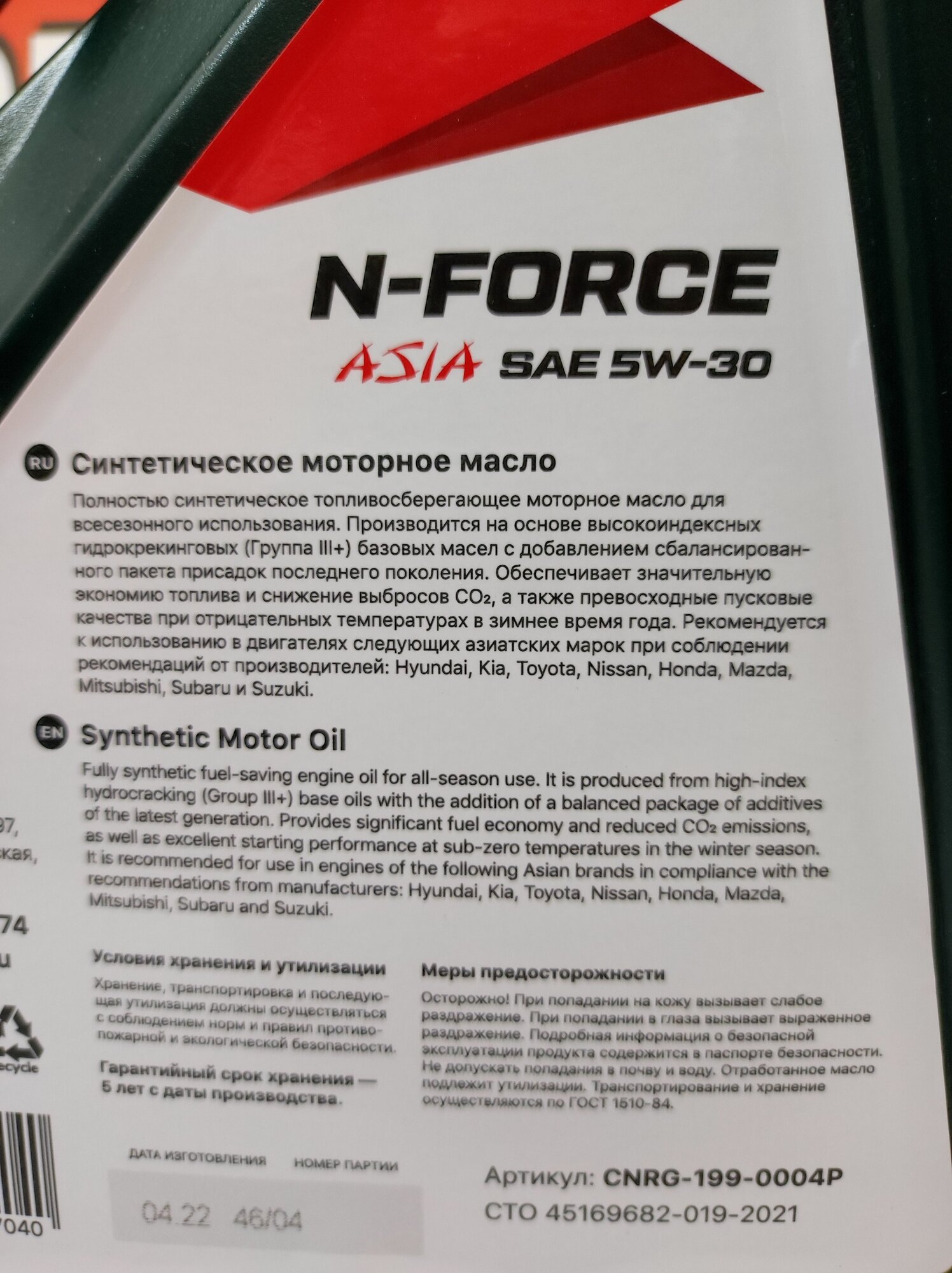 C.N.R.G. N-FORCE ASIA 5W-30 4l
