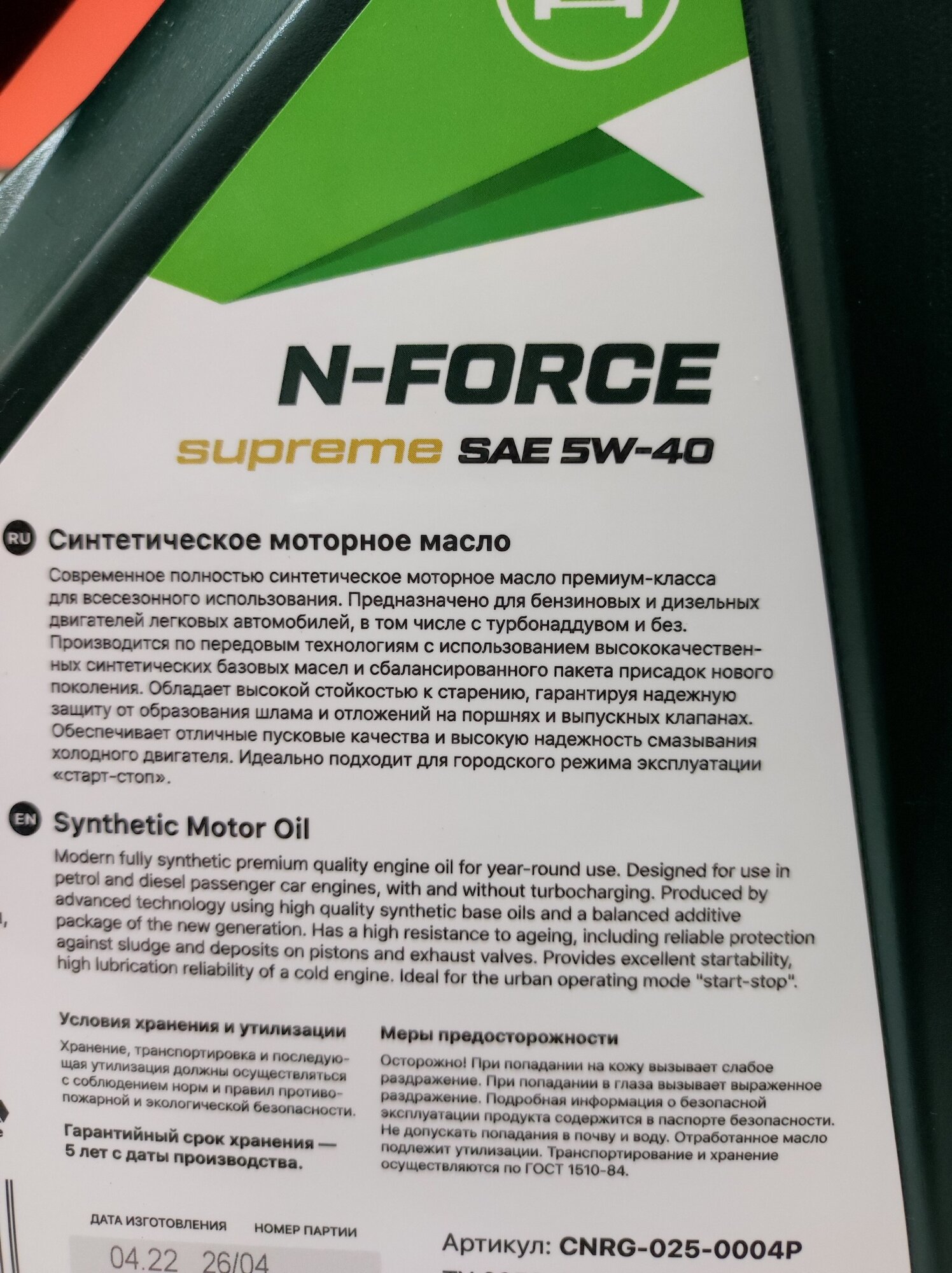 C.N.R.G. N-Force Supreme 5w40 SN/CF plastic 4l p.