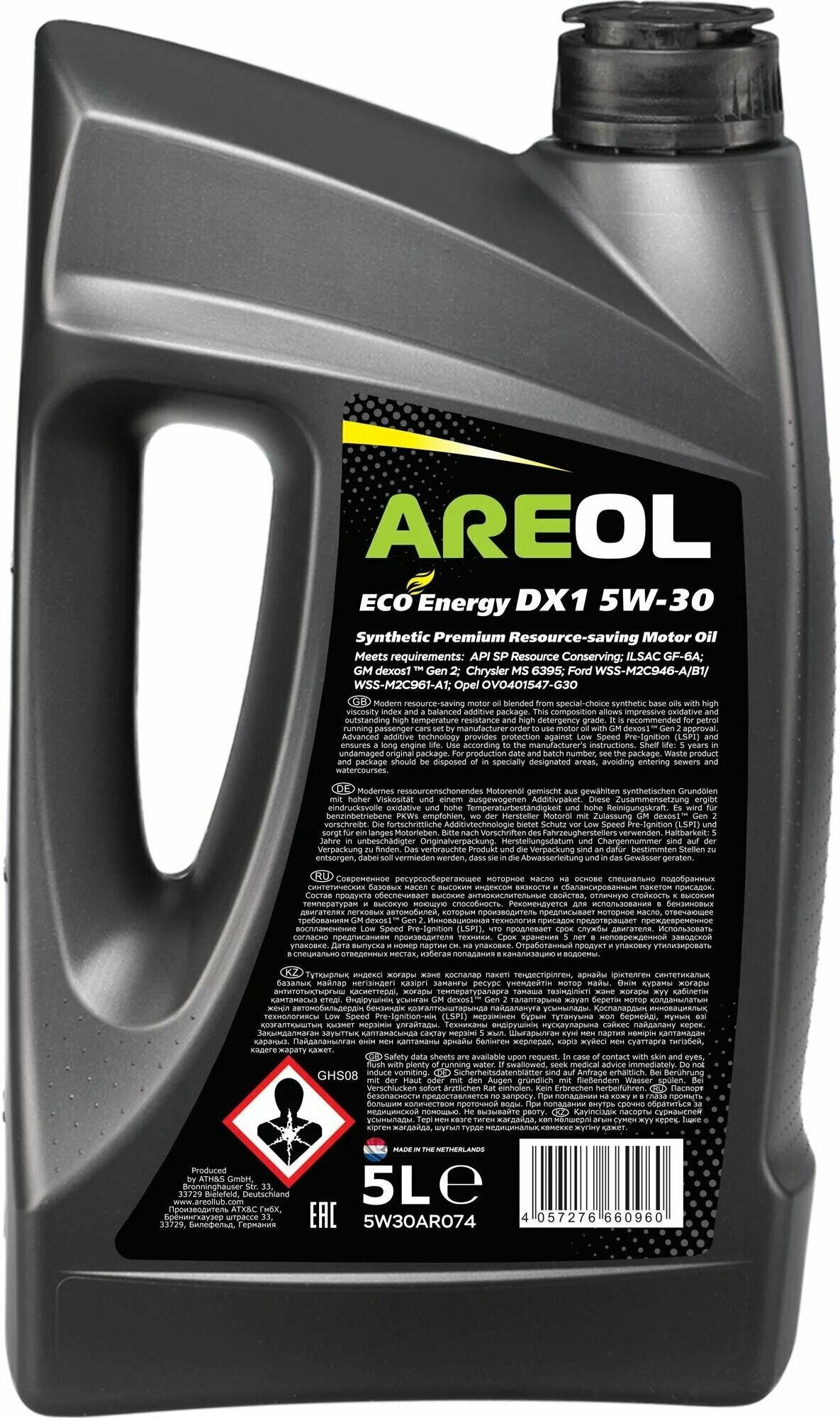 ! synthetics AREOL ECO Energy DX1 5W30 5L API SP RC, ILSAC GF-6A, Dexos1 Gen 2