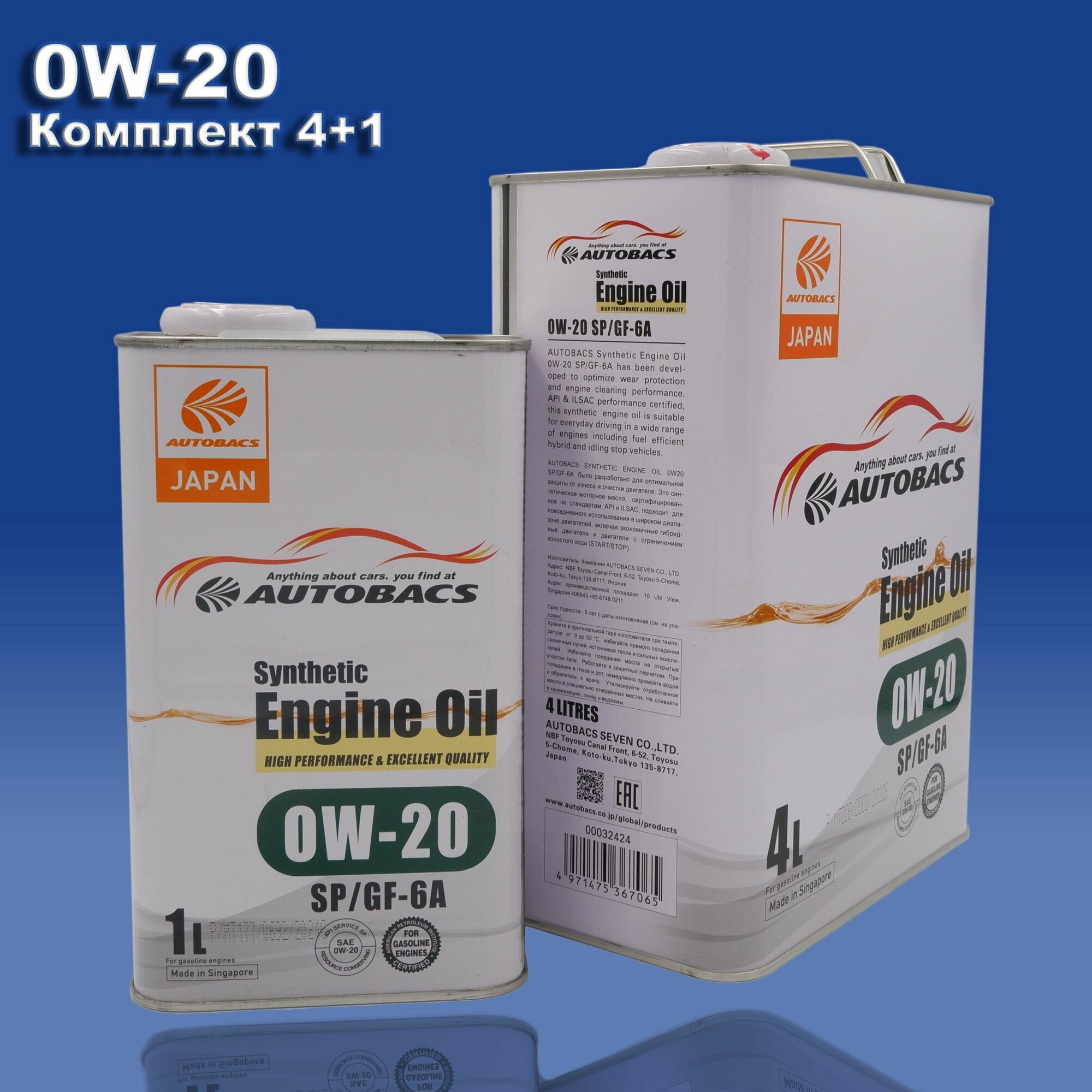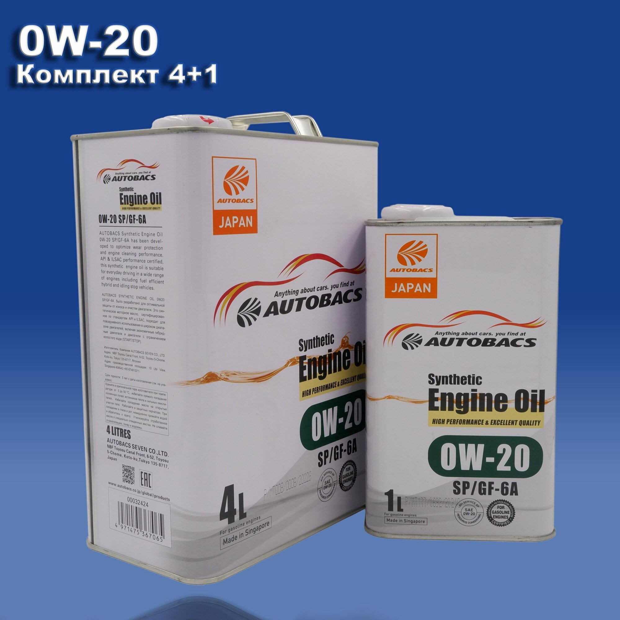 0W20 AUTOBACS Singapore SYNTHETIC SP/GF-6A Set 4+1 liter