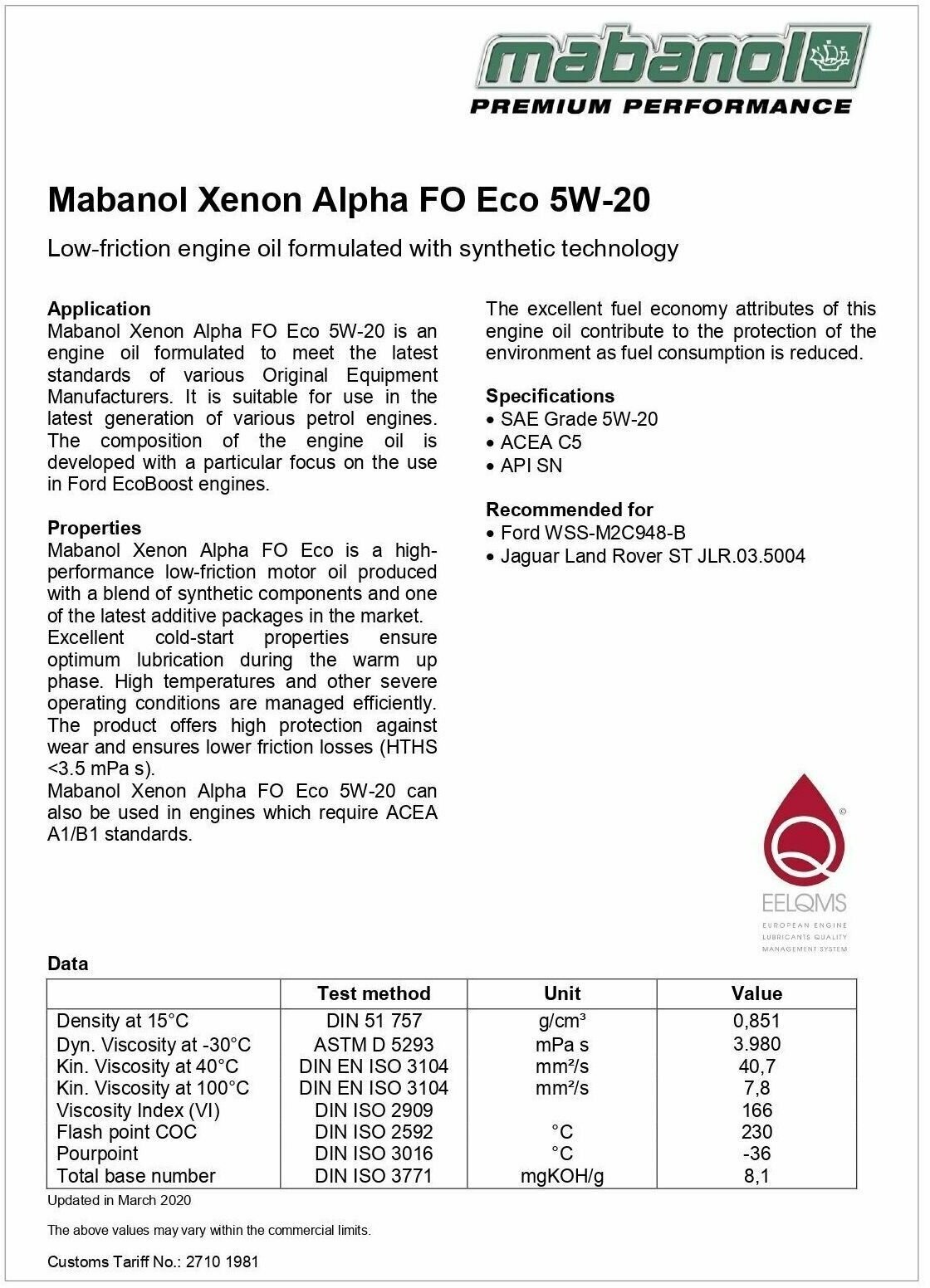 Mabanol Xenon Alpha FO Eco 5W-20 Synthetic 5 l