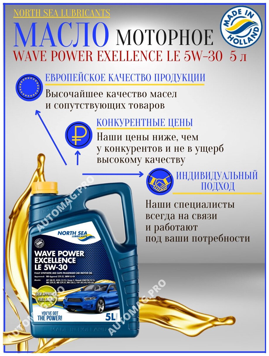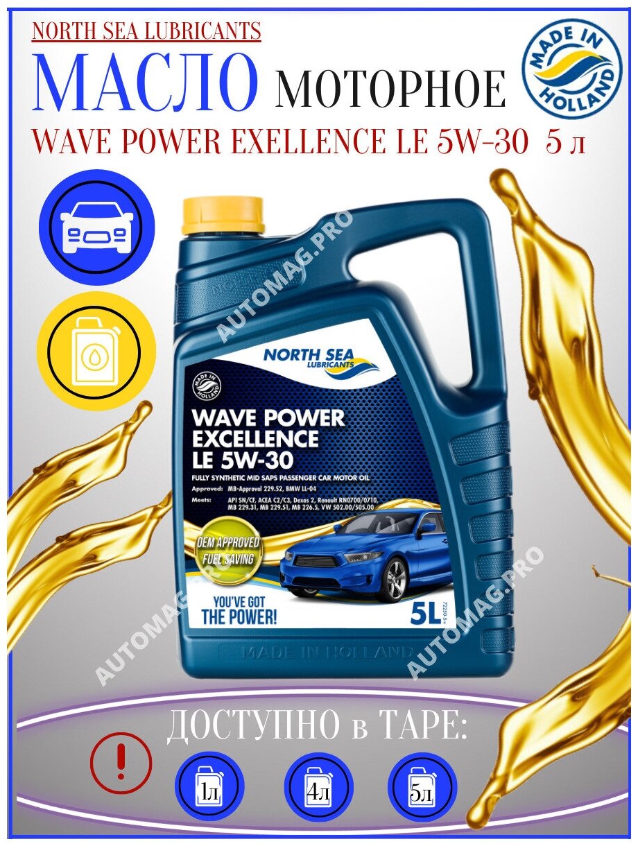 SAE viscosity grade: 5W-30, oil type: synthetic, fuel type: gasoline, diesel, API standard: CF, SN, ACEA standard: C2, C3, OEM approvals: GM Dexos 2, MB 229.31, MB 229.51, MB 229.52, Renault RN 0700, Renault RN 0710, VW 502.00, VW 502.00/505.00, VW 505.00