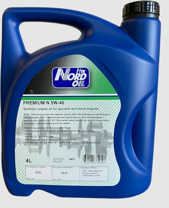Synthetic NORD OIL 5W-40 Premium N SN/CF 4l
