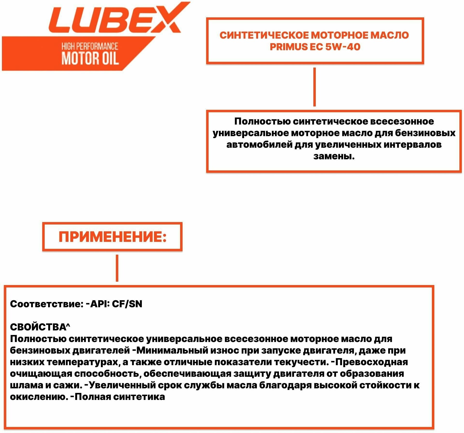SAE viscosity grade: 5W-40, oil type: synthetic, fuel type: gasoline, API standard: CF, SN, engine type: four-stroke